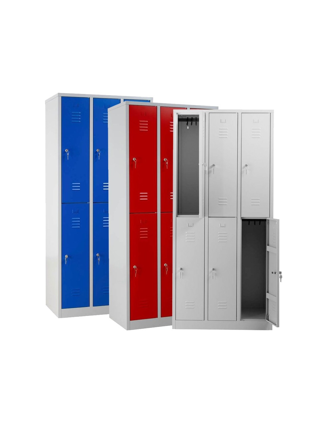 Wolfstahl Garderobenschrank Kleiderspind 6 Schliessfächer Lichtgrau - Feuerrot - Enzianblau