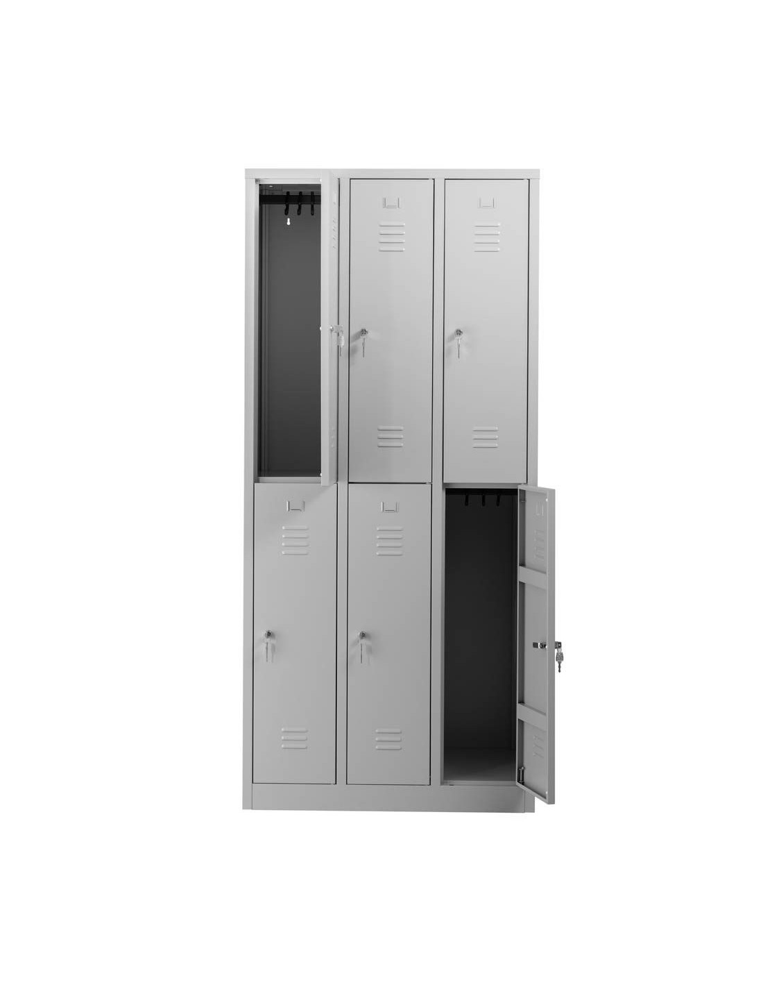 Mit dem Wolfstahl Spind, 6 Schliessfächer sind Sie optimal ausgestattet, denn er bietet Mitarbeitern, Schülern oder Kunden die Möglichkeit, Ihre persönlichen Wertgegenstände aufzubewahren und vor unbefugtem Zugriff zu schützen. In diesen Bereichen wird dieses Modell bevorzugt eingesetzt: Schule, Sporthalle, Umkleidekabine, Universität, Werkstatt.