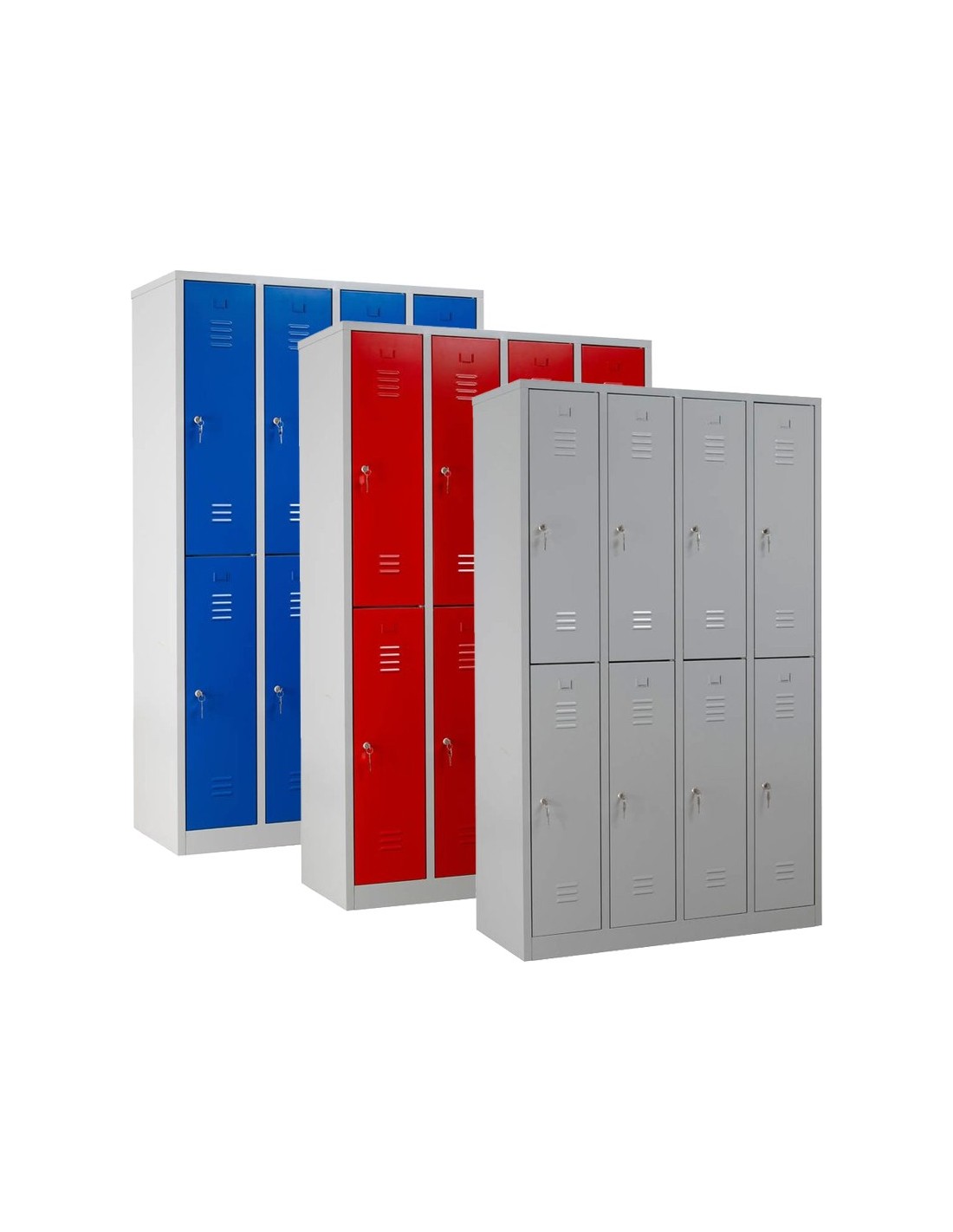 Wolfstahl Garderobenschrank Kleiderspind 8 Schliessfächer Lichtgrau - Feuerrot - Enzianblau