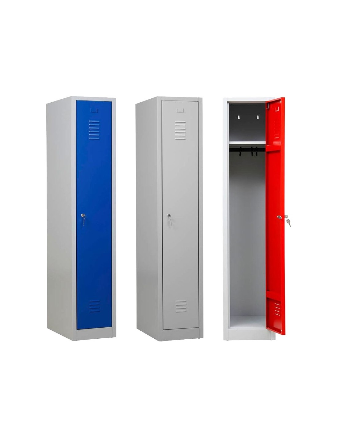 Wolfstahl Garderobenschrank Kleiderspind 1 Schliessfach Lichtgrau - Feuerrot - Enzianblau