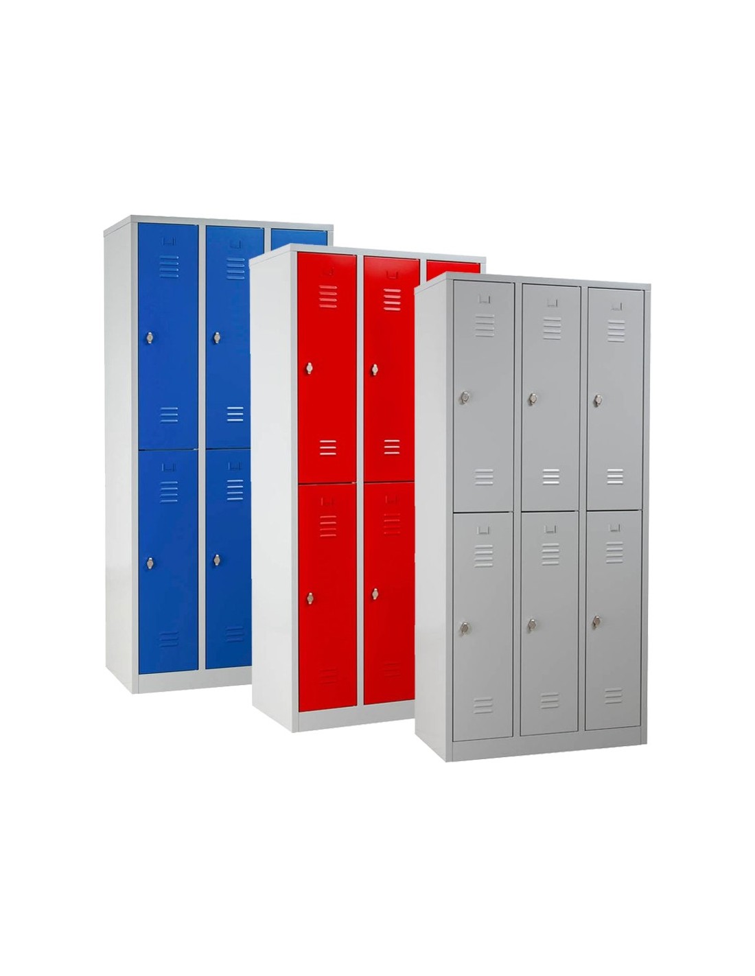 Wolfstahl Garderobenschrank Kleiderspind 6 Schliessfächer Lichtgrau - Feuerrot - Enzianblau