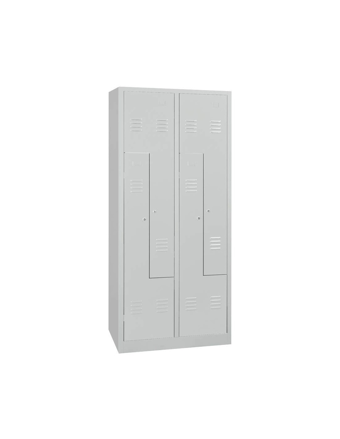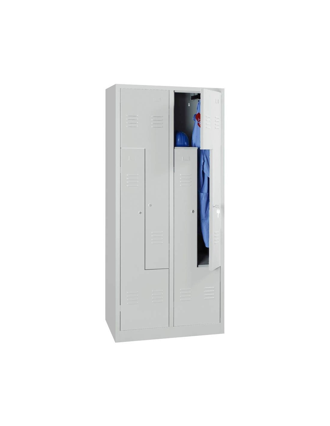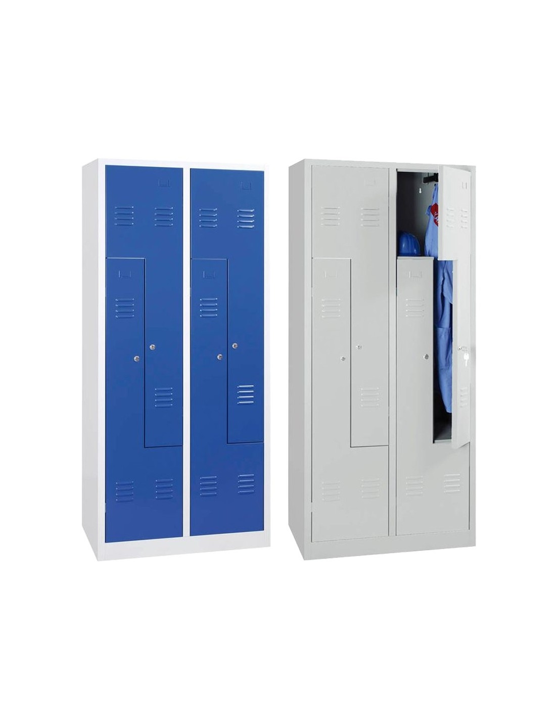 Wolfstahl Garderobenschrank Kleiderspind in "Z"-Form 4 Schliessfächer Zylinderschloss Lichtgrau - Enzianblau