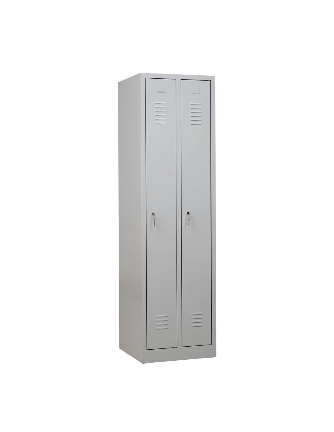 Wolfstahl Garderobenschrank Kleiderspind 2 Schliessfächer Zylinderschloss Lichtgrau - Enzianblau