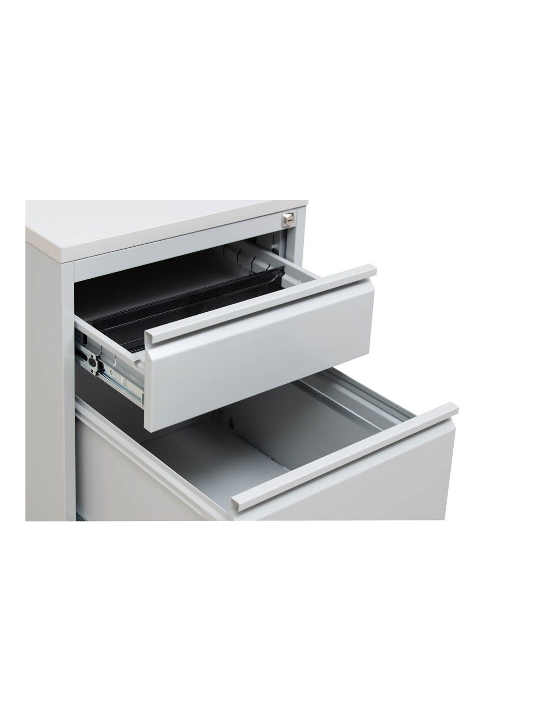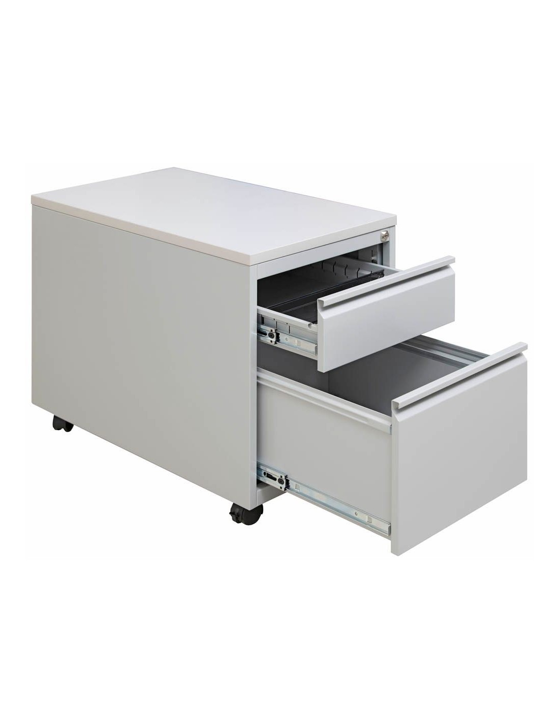 Sie erhalten hier ein Möbelstück mit 2 Auszügen, genauer gesagt mit 1 Schublade und 1 Hängeregistraturauszug. So haben Sie genügend Ablagmöglichkeiten für Ihre Ihre Akten. Das Material, aus dem die Schubladen hergestellt sind, ist Stahl. Mit einer Auszugsöffnung von bis zu 100% können Sie die Schubladen komfortabel nutzen.