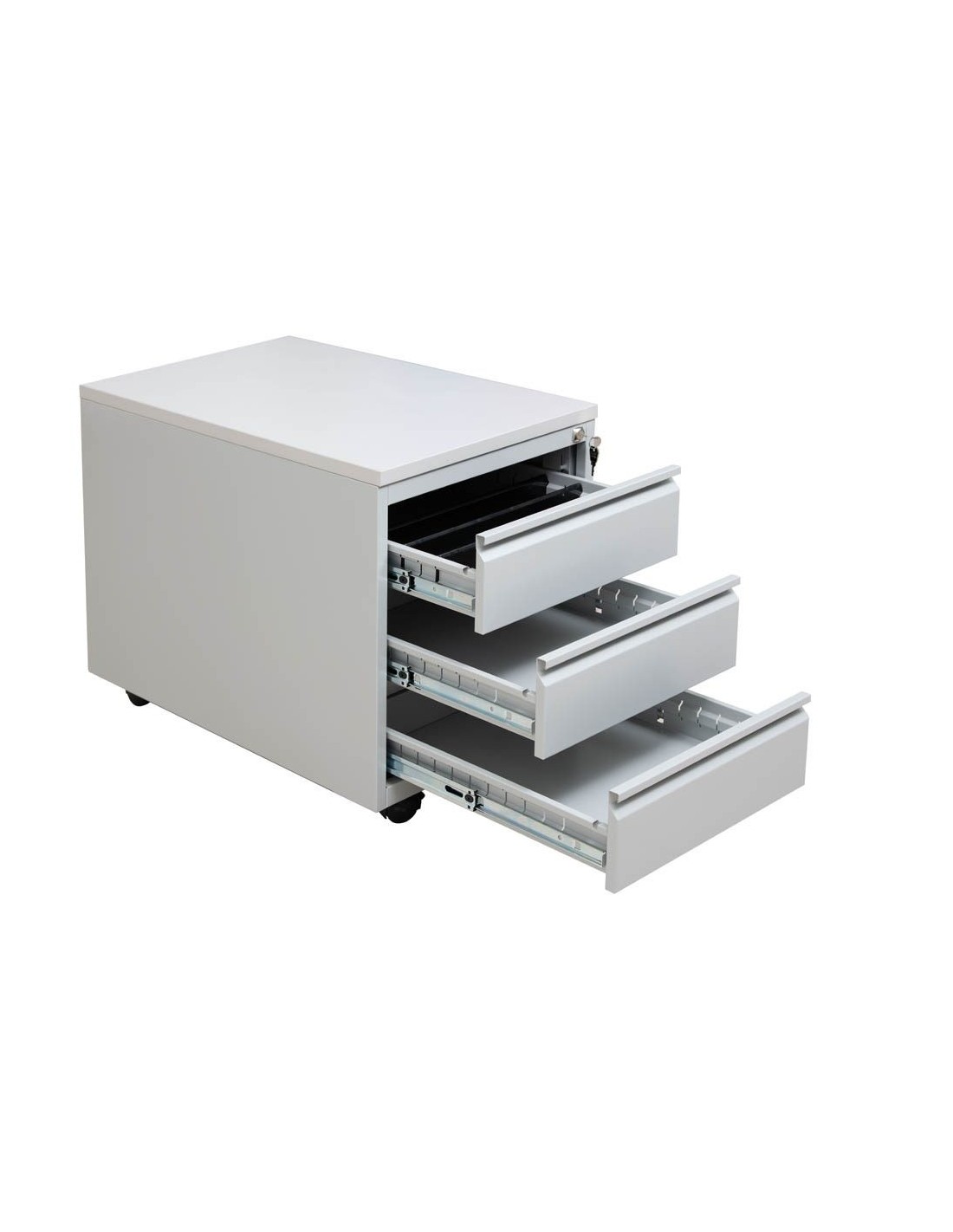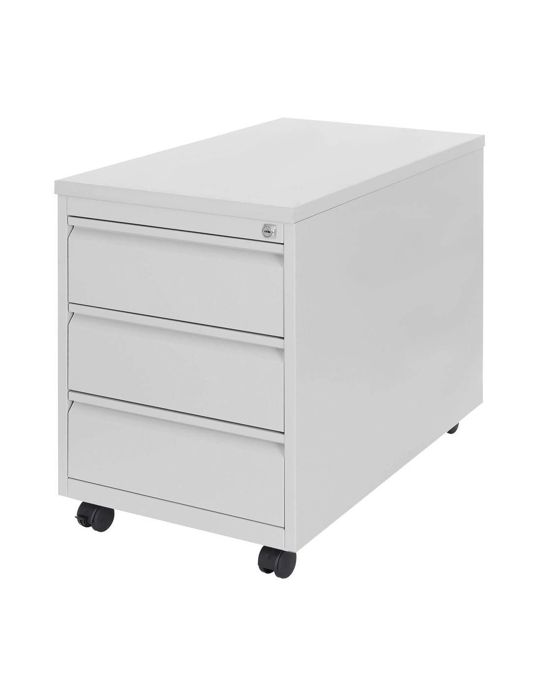 Der Wolfstahl Rollcontainer 3 Auszüge 46,0 x 79,0 x 62,0 cm ist die perfekte Stauraumergänzung für Ihren Arbeitsplatz. Er bietet jede Menge Platz zur Aufbewahrung Ihrer Utensilien und Unterlagen, der Ihnen dann an anderer Stelle zugute kommt. So starten Sie jeden Arbeitstag mit einem aufgeräumten Arbeitsumfeld. Sie können das Möbelelement dank der leichtgängigen Rollen ganz bequem dorthin schieben, wo Sie es haben möchten. Die praktische Feststellbremse verhindert ein ungewolltes Wegrollen.