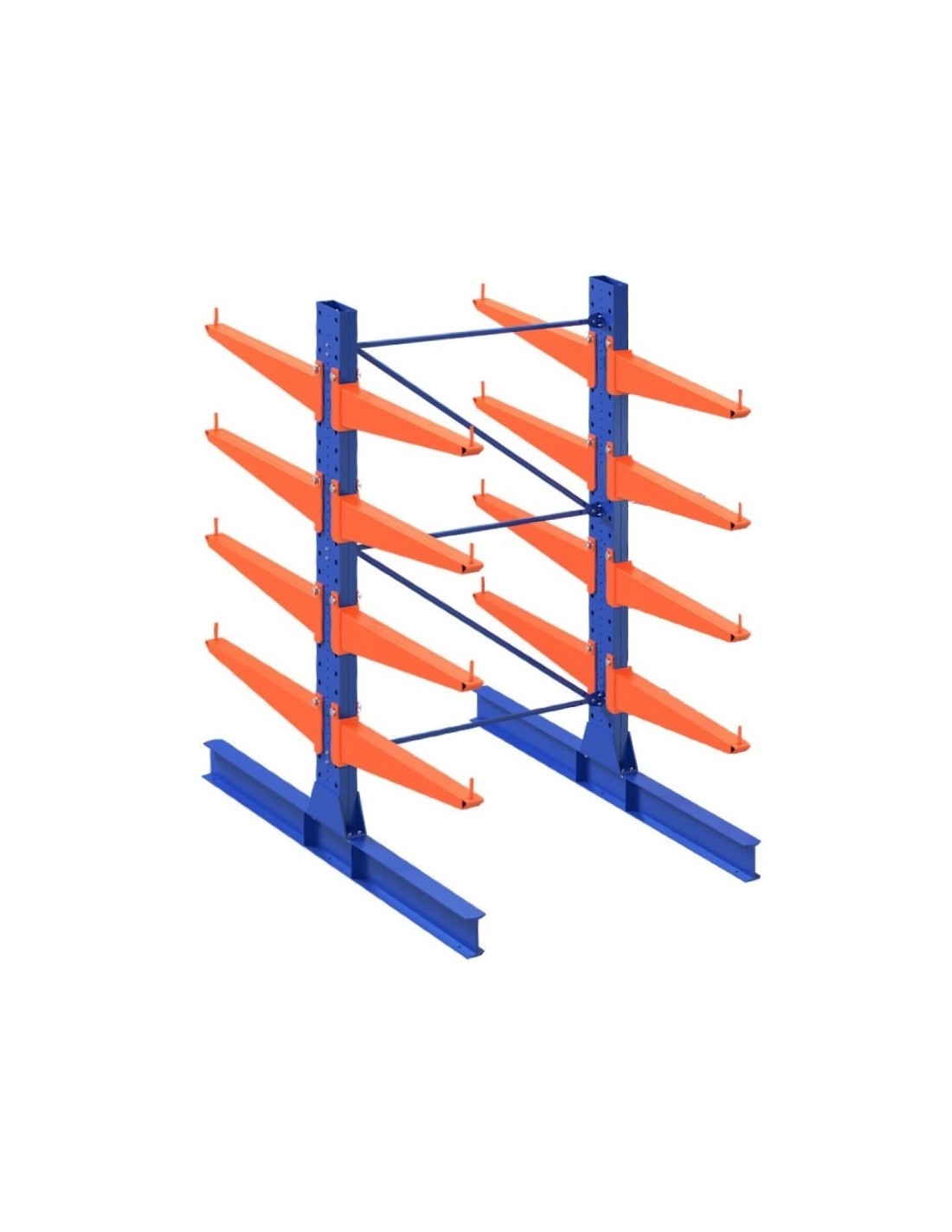 Wolfstahl Kragarmregal doppelseitig – Grundelement 4m hoch, 80cm Armtiefe, 1,1m breit – 4 Ebenen für professionelle Langgutlagerung