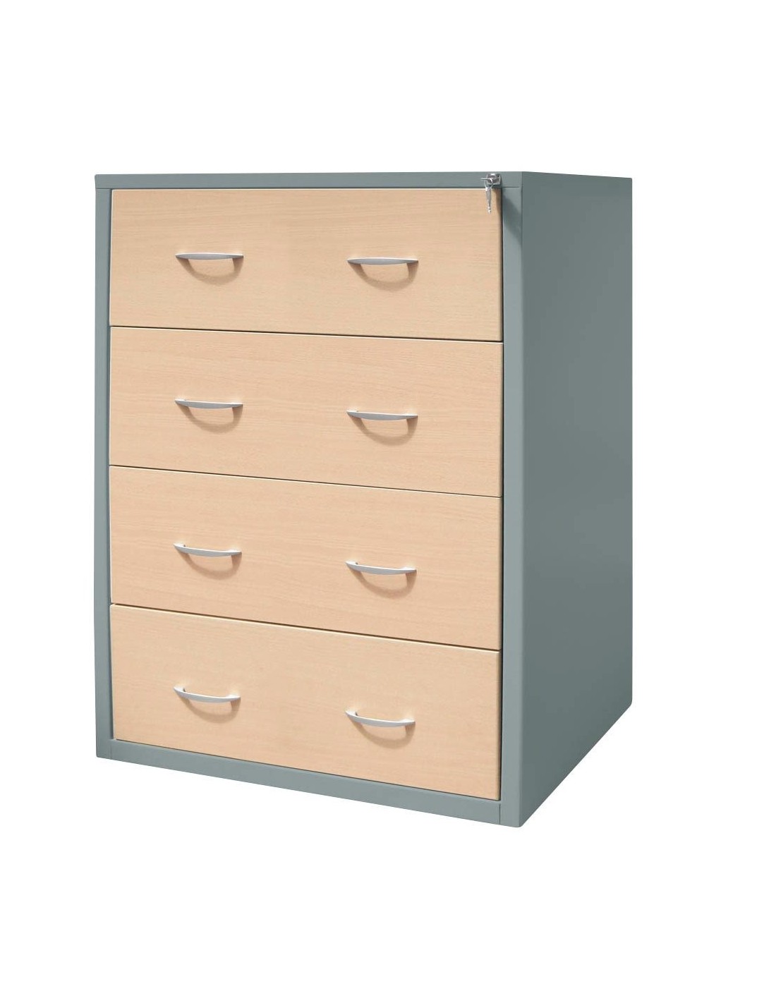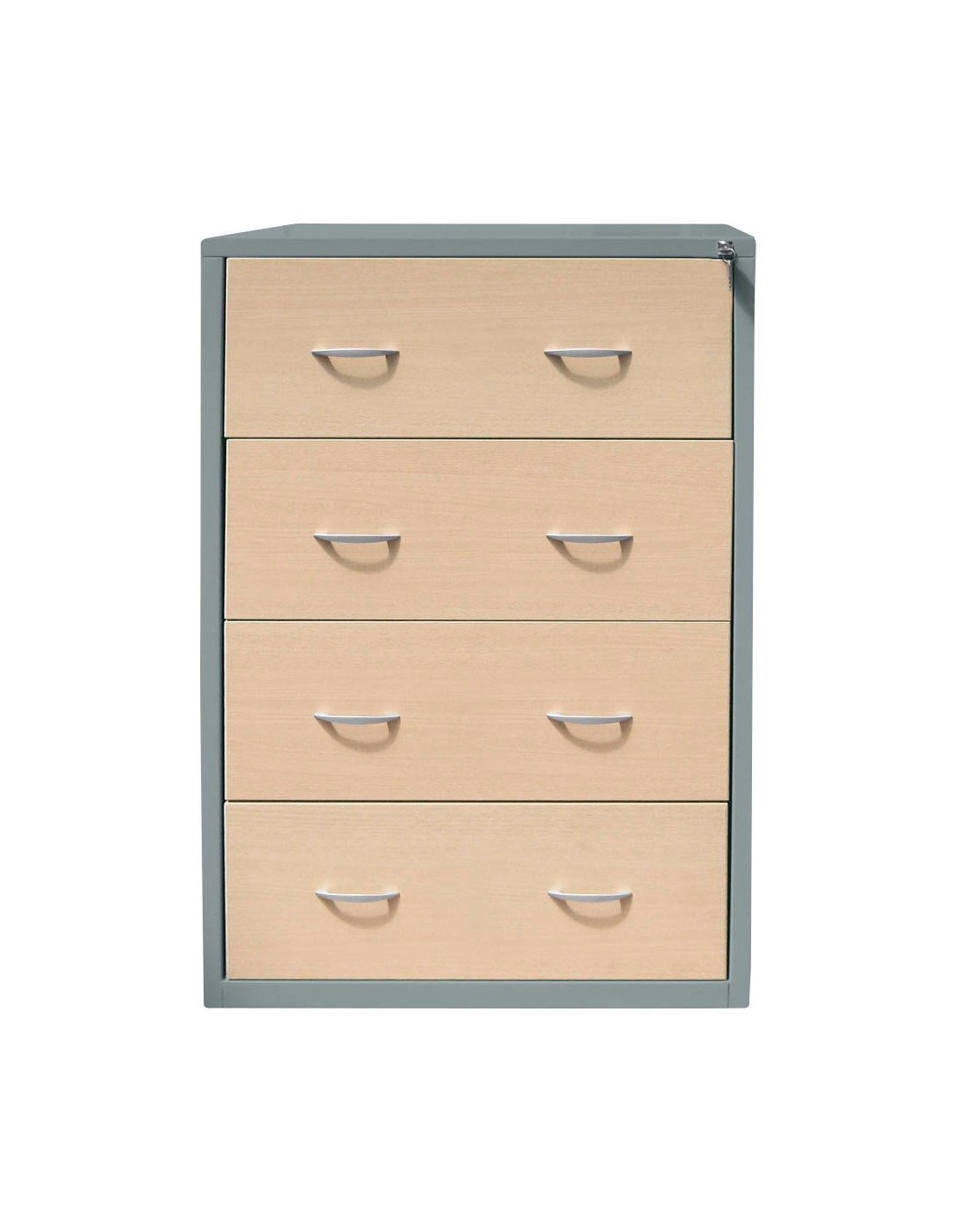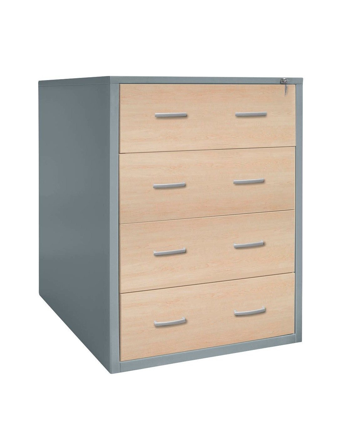 Die hochwertigen Komponenten und deren Herstellungsart zeichnen dieses Möbelobjekt aus. Das solide Material Stahl ist der Hauptbestandteil des Korpus. Machen Sie sich keine Gedanken über unschöne Schrammen oder Flecken. Die widerstandsfähige Pulverbeschichtung schützt vor bleibenden Schäden z.B. nach Stössen. Sie sorgt auch für eine leichte Reinigung. Die zweifarbige Farbkombination dieses Möbelstücks, mit dem Korpus in Silber und der Vorderseite in Ahorn, macht es zum Highlight Ihrer Räumlichkeiten. Sie können das Möbelstück abschliessen – ideal, damit nicht jeder einen Einblick hat. Aus folgenden Werten setzen sich die wichtigsten Masse zusammen: