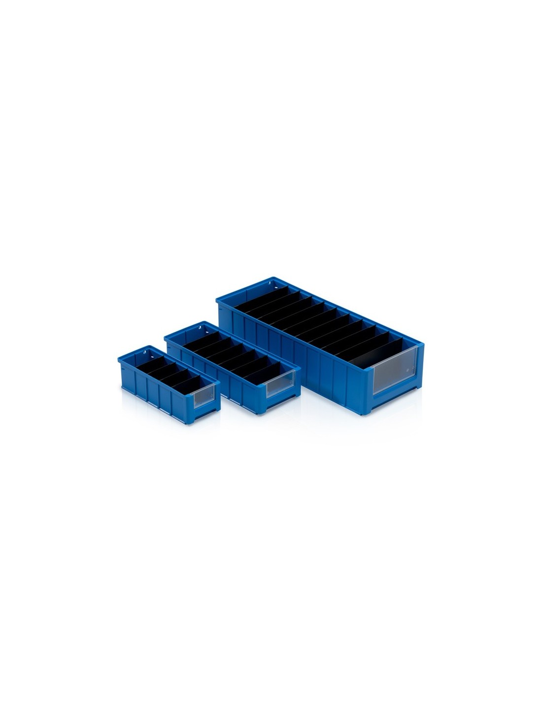 Diese Trennwand ist speziell dafür konzipiert, um die Regalkästen mit den Bestellnummern 964100, 964200, 964300 und 964400 zu unterteilen. Sie ist in einem eleganten Schwarz gehalten und passt perfekt zu den blauen Regalkästen.