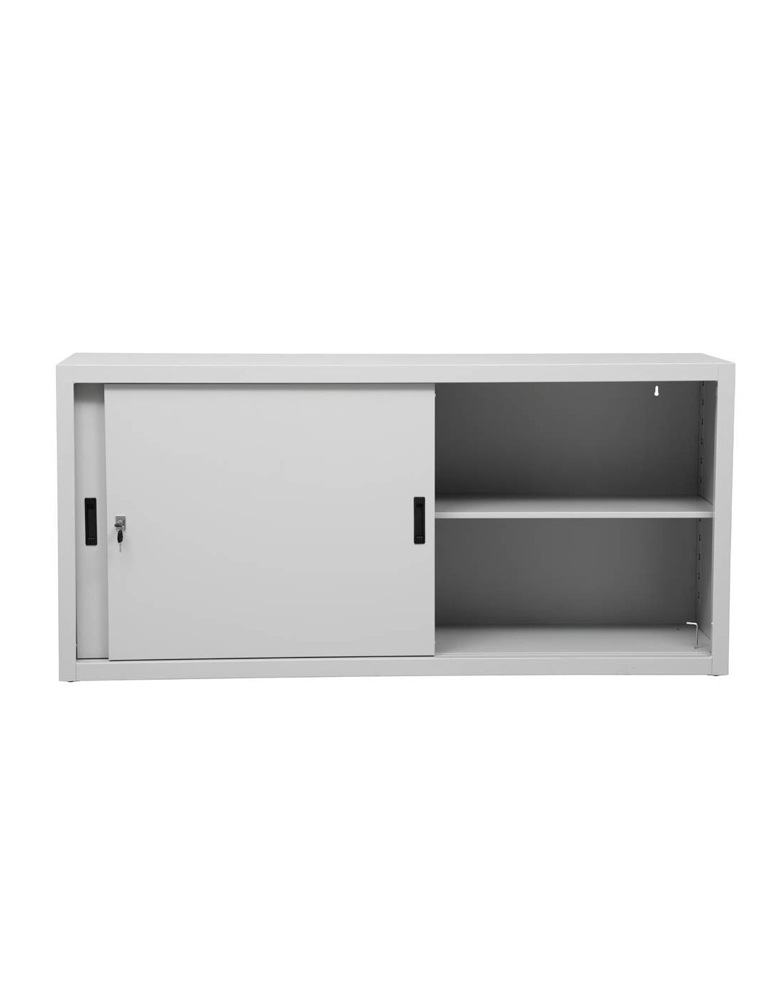 Wolfstahl Schiebetürenschrank Stahl 2 Fachböden lichtgrau 160 x 45 x 75 cm