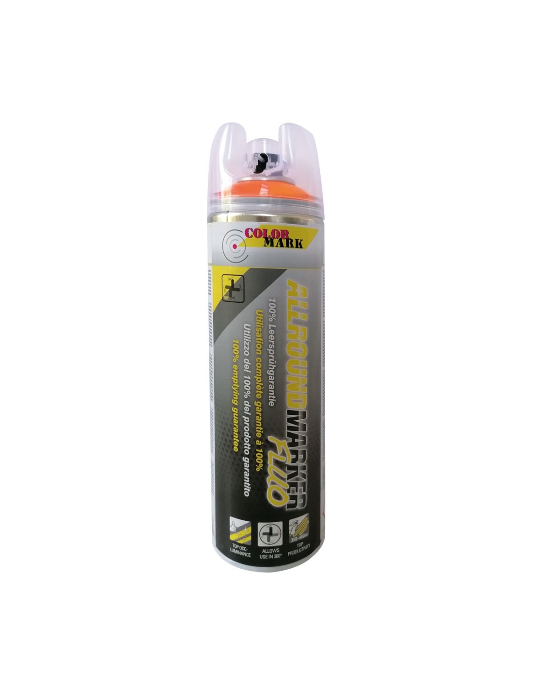 Das Allround - Markierspray eignet sich nicht nur für Baustellen, sondern auch für den Tunnel- und Bergbau. Die intensive Leuchtkraft der Fluo-Farbtöne sorgt für eine hervorragende Sichtbarkeit, selbst auf feuchten Untergründen.