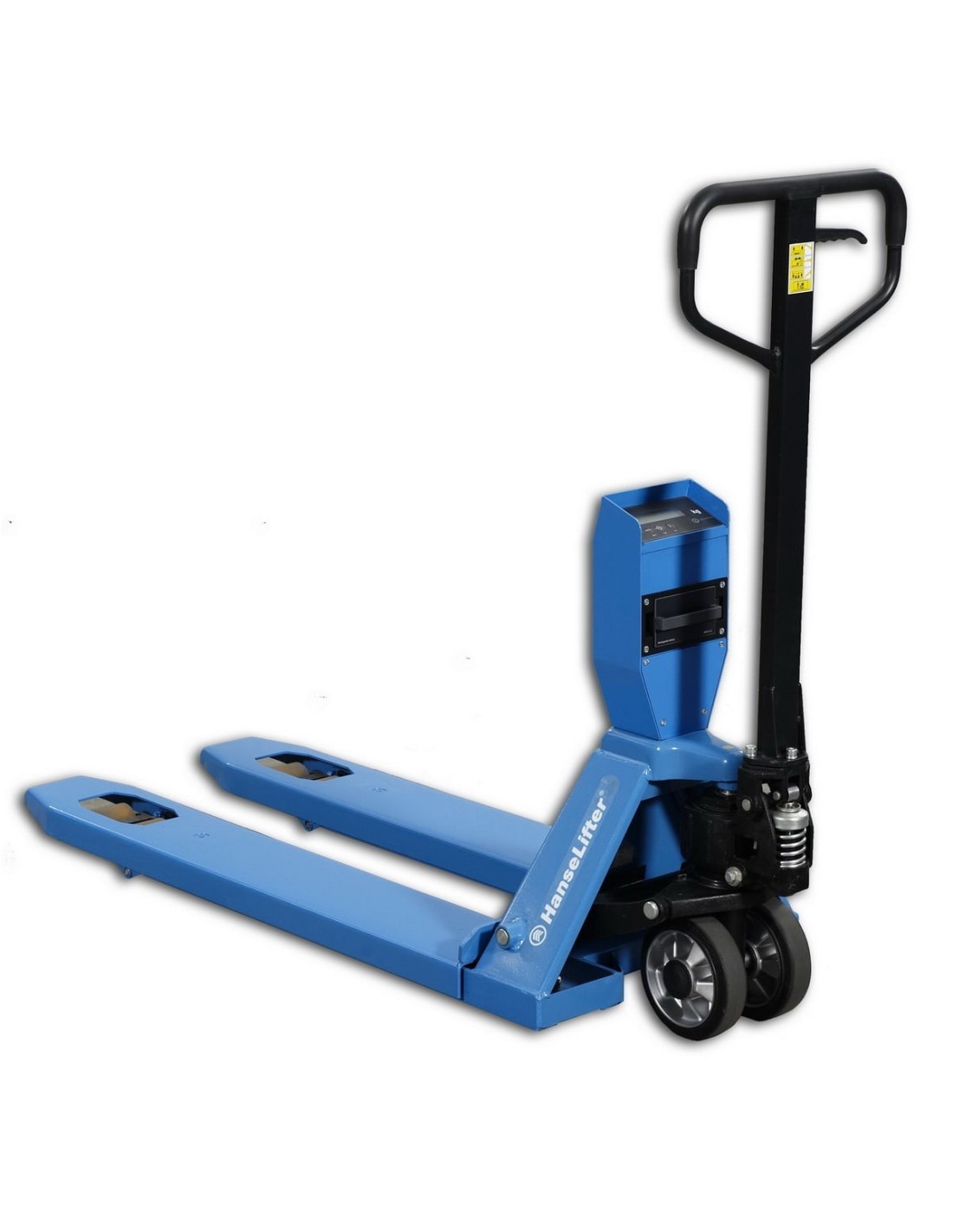 Dieser Hubwagen von Hanselifter mit geeichter Waage und Drucker ist ideal für den täglichen Dauereinsatz und besticht durch seine Robustheit. Mit seinen 1150 mm langen Gabeln ist er perfekt für genormte Europaletten geeignet.