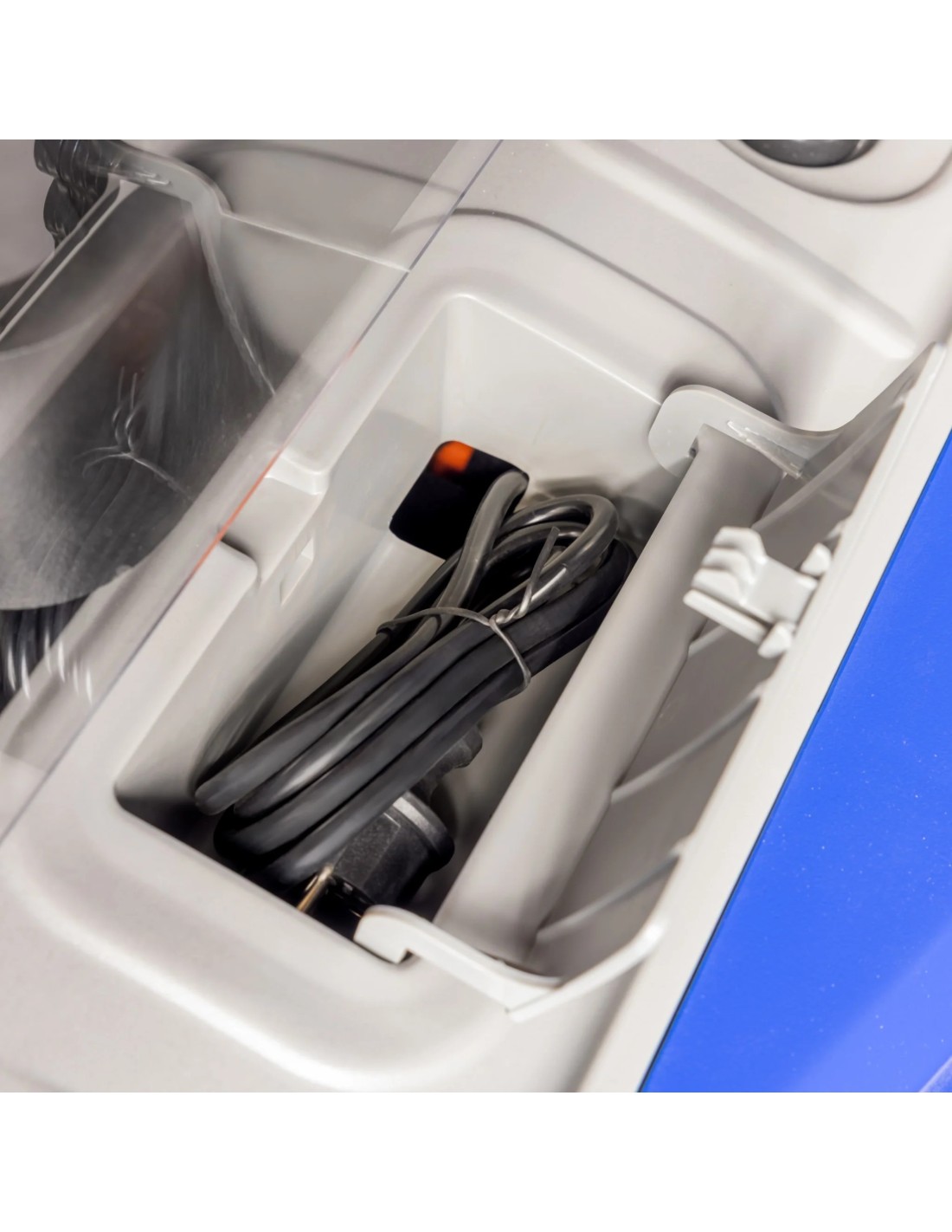- Aufladen: Einfaches Aufladen an jeder 230V Steckdose dank integriertem Stromkabel.
