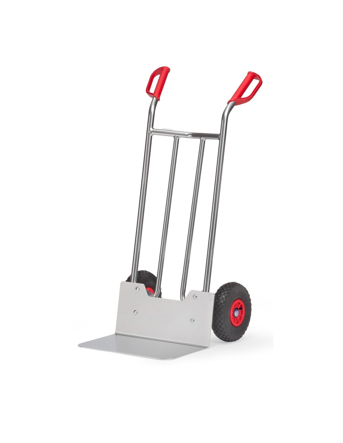 Die Alukarren eignen sich besonders für den Einsatz im Freien oder auf unebenen Böden. Die Aluschaufel ist sauber verschweisst und austauschbar, was die Langlebigkeit des Produkts gewährleistet. Die Luftbereifung auf Kunststoff-Felgen ist robust und widerstandsfähig, mit einer weitgehend wartungsfreien Lagerung. Rollenlagerung oben und durchgebogene Querstreben sorgen für sicheren Transport von runden Gütern.