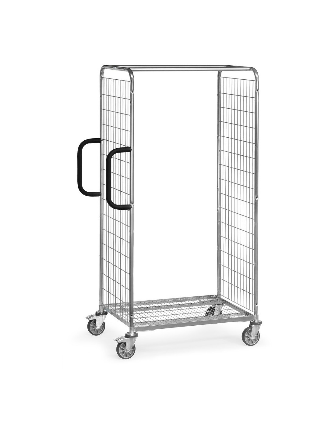 Die Stirnwände bestehen aus Stahlrohr mit eingeschweisstem Drahtschweissgitter und sind versteift durch Längsstreben. Der Boden im Grundrahmen ist ebenfalls mit einem Drahtschweissgitter versehen. Der Wagen verfügt über 4 Leichtlauf-Lenkrollen mit TPE Bereifung und Feststellern an 2 Lenkrollen gemäss der EU Norm EN1757-3 für die Sicherheit von Flurförderzeugen.