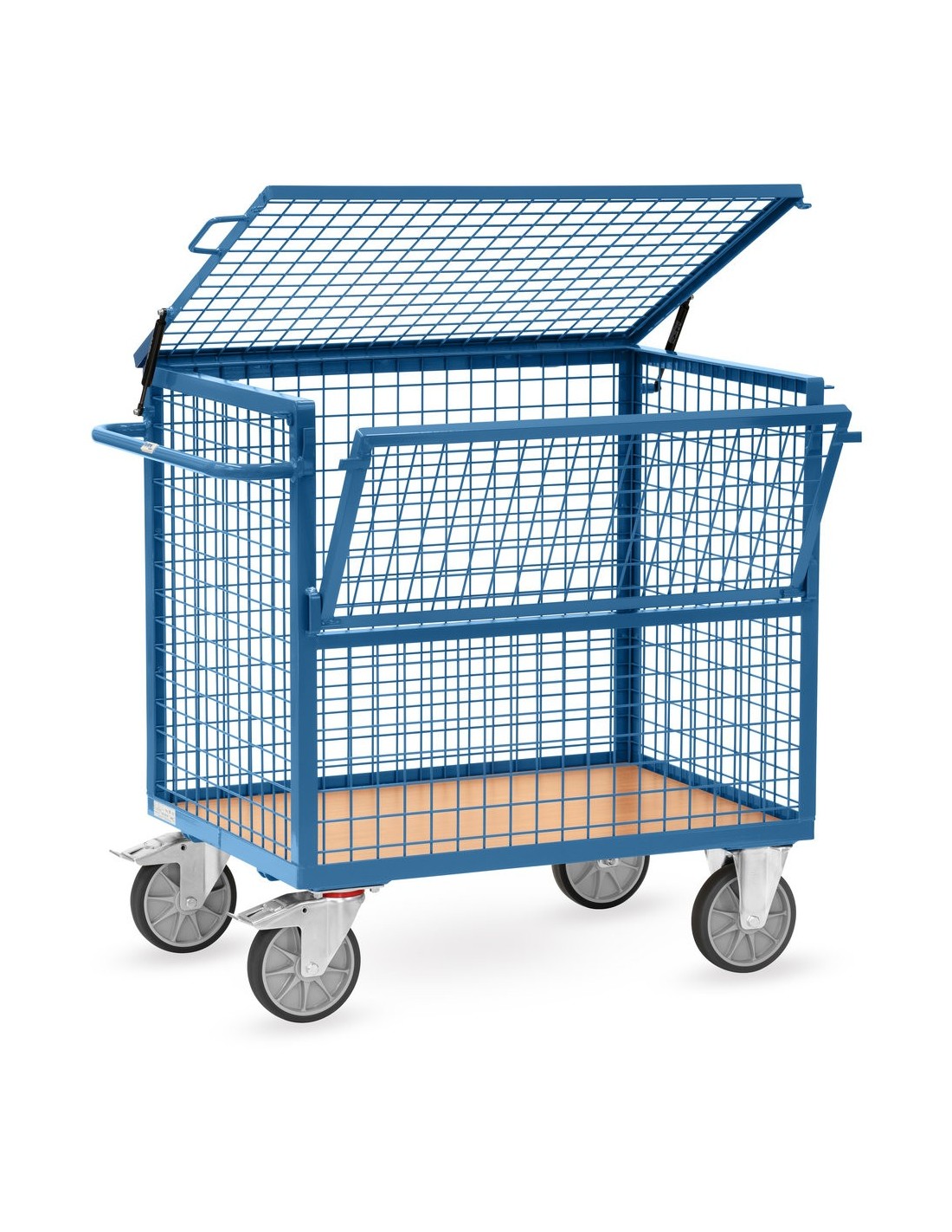 Kurze Einleitung: Der Fetra Drahtkastenwagen mit Deckel ist aus Stahlrohr und Profilstahl gefertigt und bietet vielseitige Einsatzmöglichkeiten.
