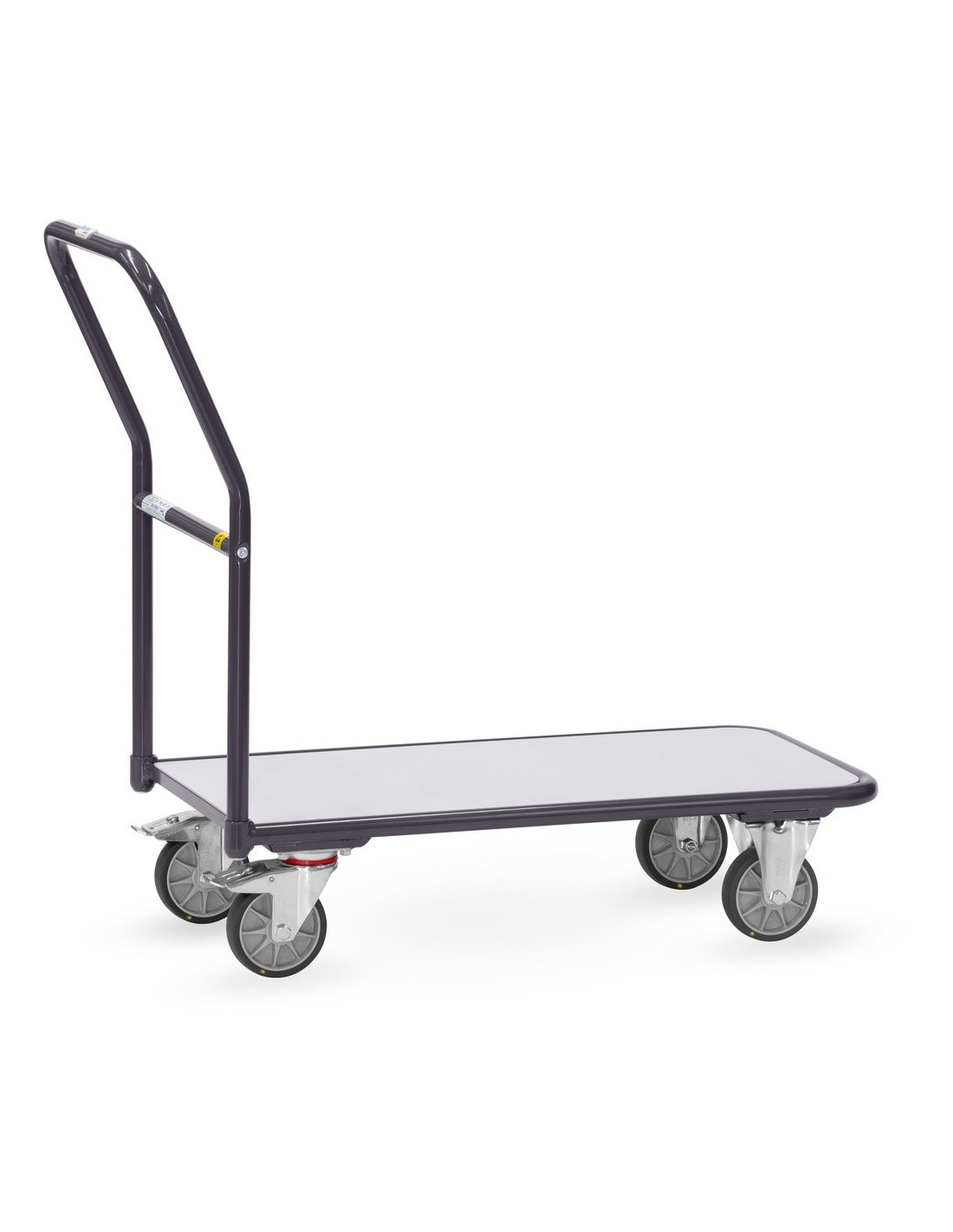 Technische Merkmale: Elektrisch leitfähige Ausführung mit ESD-Bereifung für höchsten Komfort. Schraub- und Steckkonstruktion aus Stahlrohr und Profilstahl. Boden aus elektrisch leitfähiger Holzwerkstoffplatte nach DIN 68765.