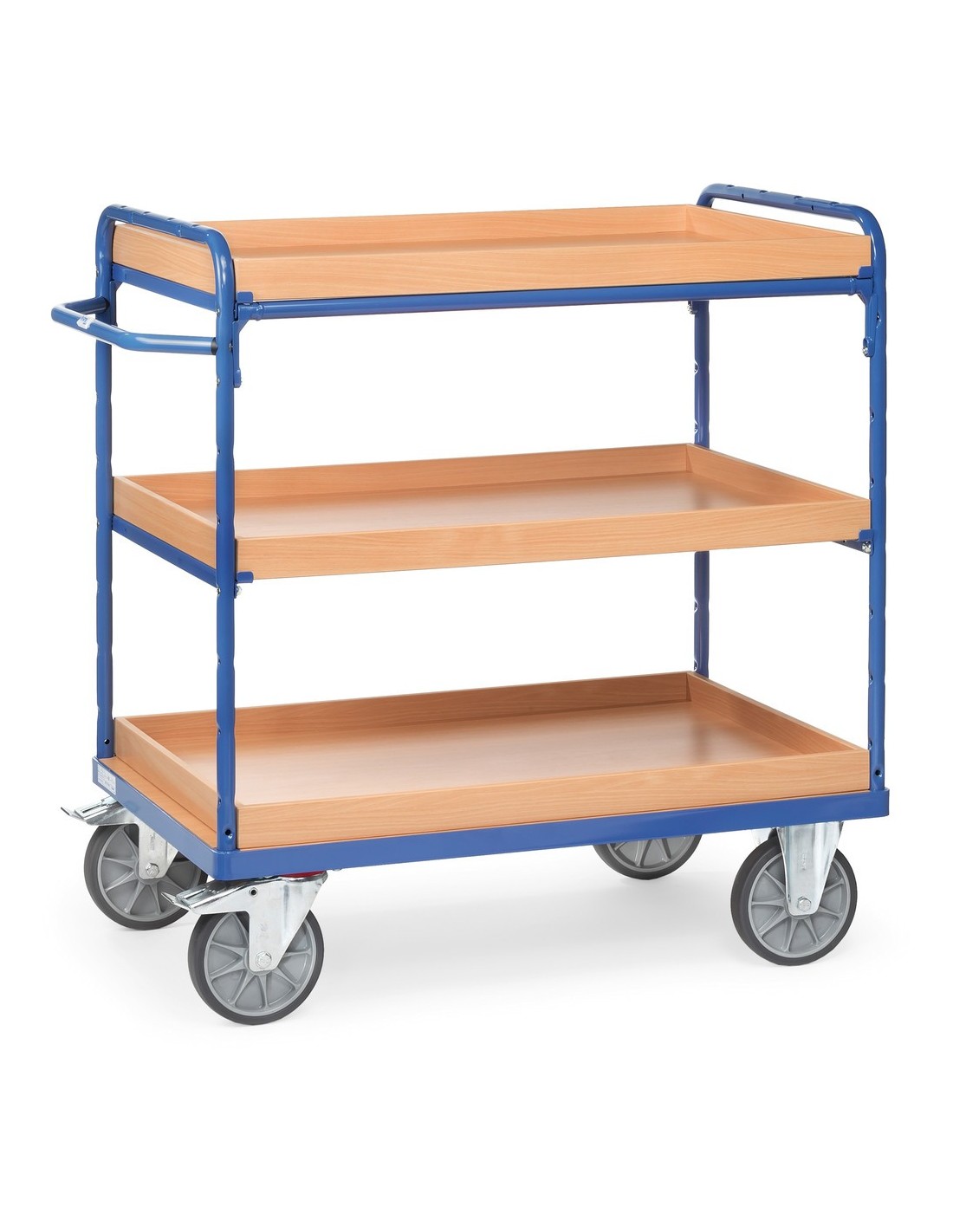 Dieser Etagenwagen von Fetra ist ideal zum Transportieren von Gütern auf mehreren Ebenen. Die stabile Konstruktion aus Stahlrohr und Profilstahl sorgt für eine hohe Belastbarkeit und Langlebigkeit.