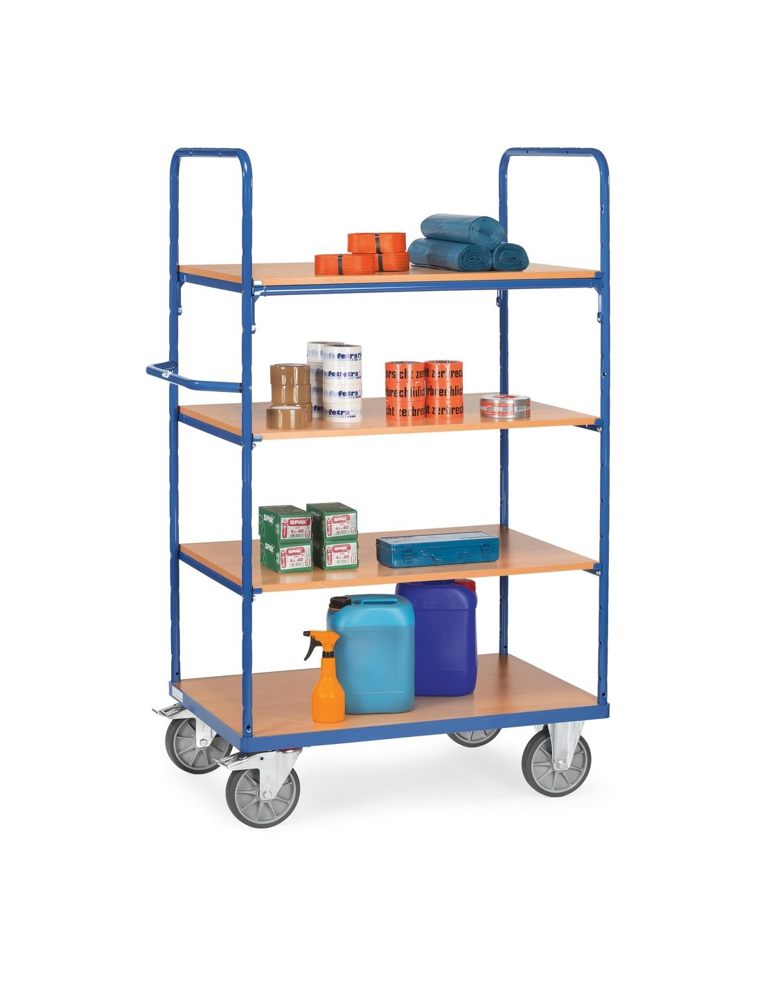 Fetra Etagenwagen mit 4 Böden, Höhe 1800 mm, blau