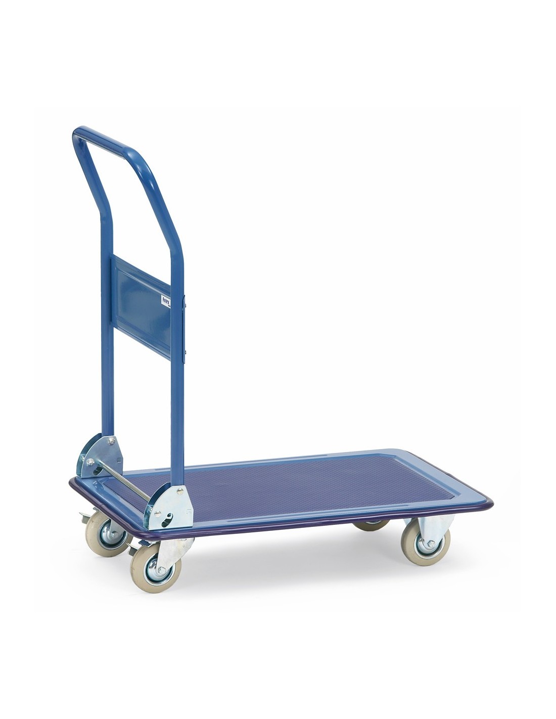 Dieser Plattformwagen Ganzstahl wird aus Stahlblech gepresst und ist pulverbeschichtet in einem ansprechenden blauen Farbton (RAL 5007). Er verfügt über einen aufgeklebten Antirutschbelag sowie eine umlaufende Schutzleiste für mehr Sicherheit. Der klappbare Rohrschiebebügel mit breiter Querstrebe ist ebenfalls pulverbeschichtet, während das Klappgelenk glanzverzinkt ist. Ausgestattet mit 2 Lenk- und 2 Bockrollen mit Vollgummibereifung, verfügt dieser Ganzstahlwagen über Feststeller an den Lenkrollen, die eine einfache Handhabung gewährleisten.