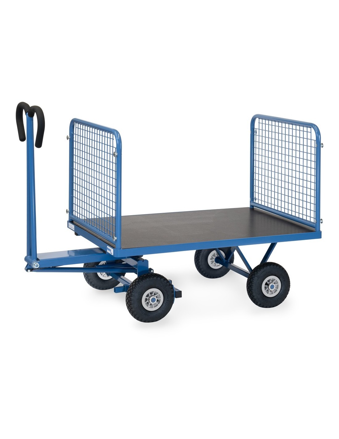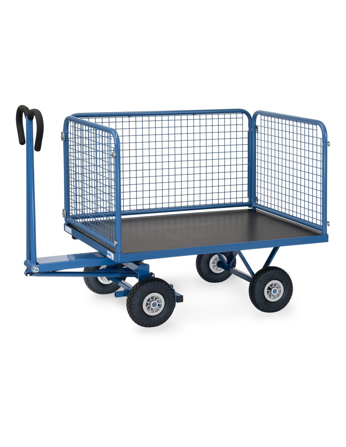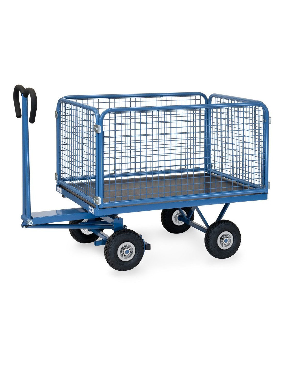 Fetra Handpritschenwagen mit 4 Drahtgitterwänden, 600 mm hoch, Luftbereifung