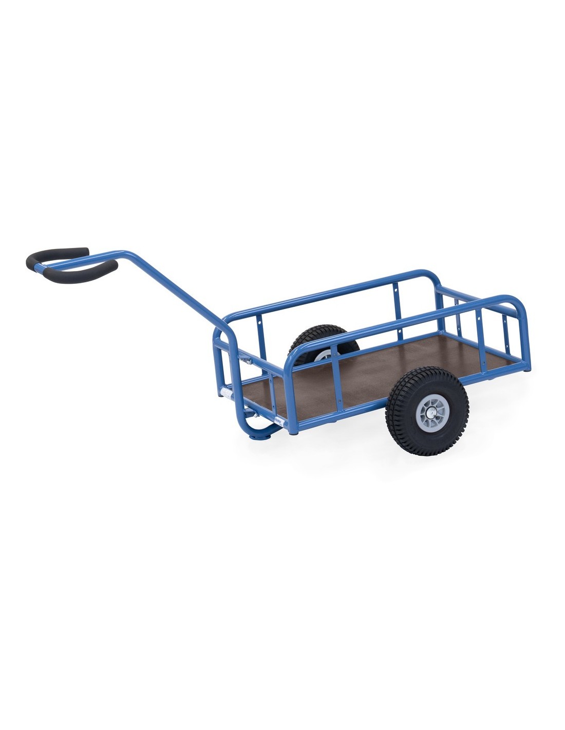 Mit einer Dauerschmierung und einer stossunempfindlichen Bauweise ist dieser Handwagen ideal für den Transport von Lasten mit geringen Fahrgeschwindigkeiten. Die Stirn- und Seitenelemente sorgen für zusätzliche Sicherheit und Stabilität bei der Ladung.