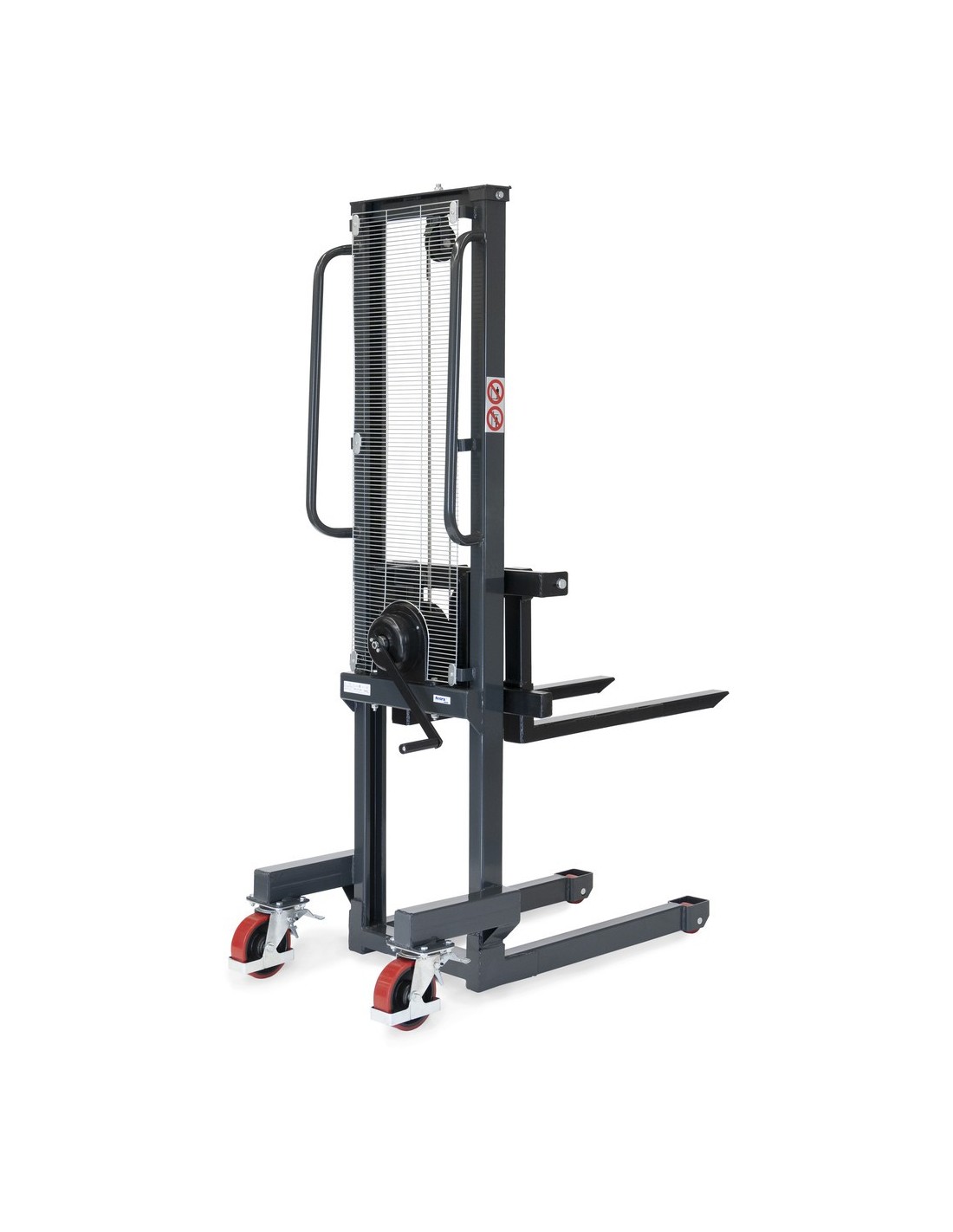 Dieser Handwinden-Stapler eignet sich ideal für den gelegentlichen Einsatz als Hub- und Transportgerät. Die stabile Profilstahl-Konstruktion mit pulverbeschichteten Rohrschiebegriffen gewährleistet Langlebigkeit und Zuverlässigkeit. Durch den Hubantrieb mittels Sicherheits-Handwinde und verstellbare Gabeln ist eine einfache Handhabung garantiert.