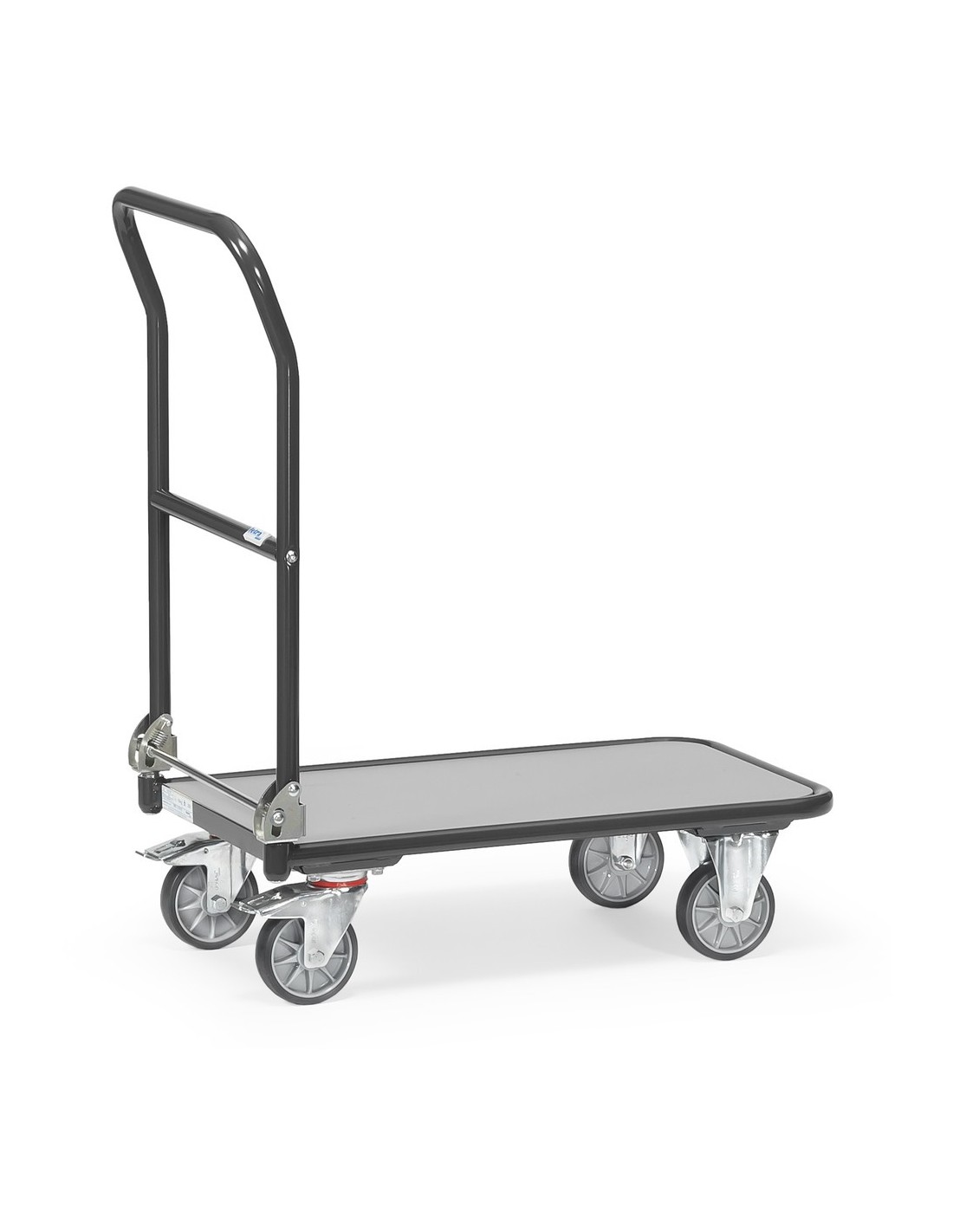 Dieser Fetra Klappwagen mit 1 Bügel, Grey Edition ist aus massiven Stahlrohr konstruiert und zeichnet sich durch seine hohe Belastbarkeit aus. Die pulverbeschichtete Oberfläche in RAL7016 Anthrazitgrau verleiht ihm nicht nur eine ansprechende Optik, sondern schützt das Material auch vor äusseren Einflüssen.