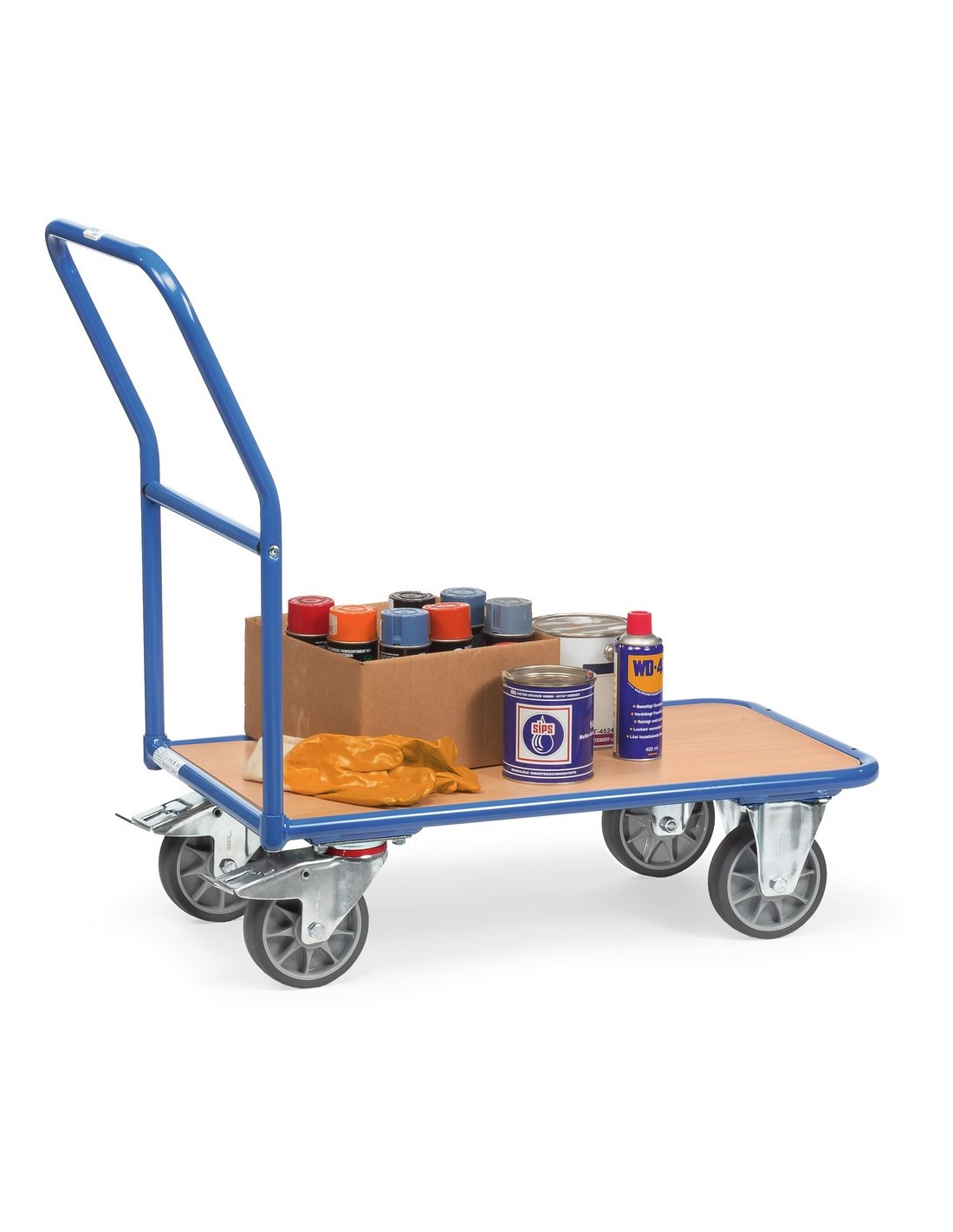 Dieser Magazinwagen eignet sich ideal für den Transport schwerer Lasten in Lagerhäusern, Werkstätten oder Produktionsstätten. Er überzeugt durch seine robuste Stahlrohr- und Schweisskonstruktion, die pulverbeschichtet ist und in einem ansprechenden blauen RAL 5007 Ton gehalten ist. Die Plattform besteht aus einer stabilen Holzwerkstoffplatte mit einem dekorativen Buchenmuster.