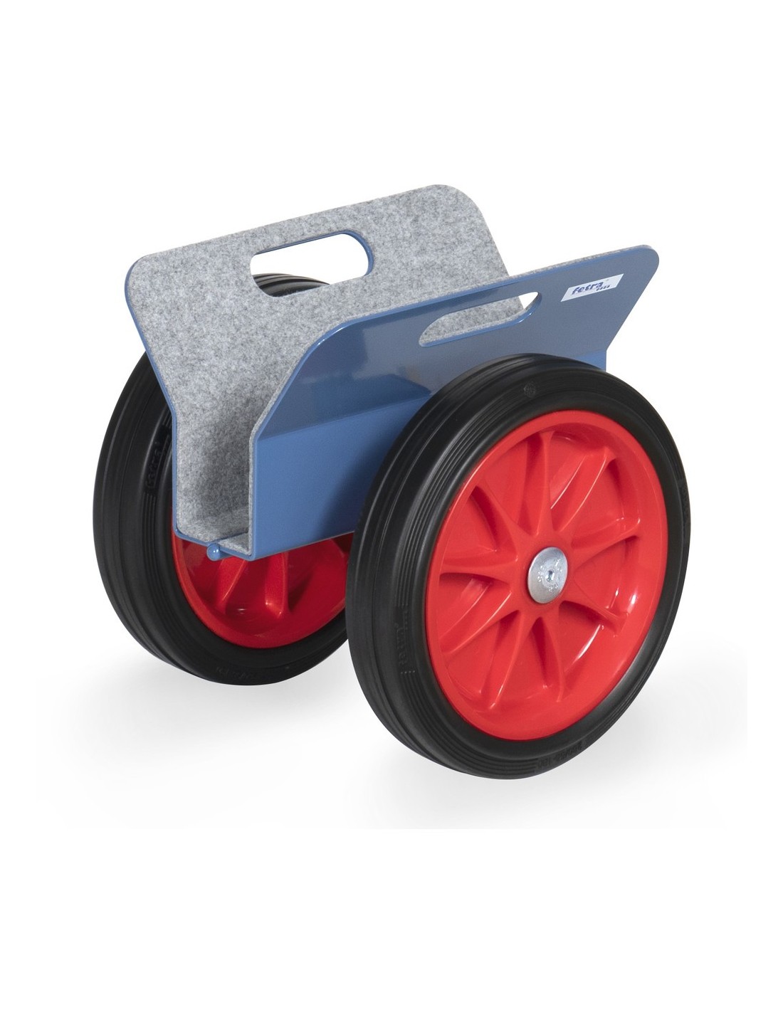 Dieser Plattenroller besteht aus einer stabilen Stahl-Schweisskonstruktion, die pulverbeschichtet in einem eleganten Blau RAL 5007 ist. Die Klemmflächen sind mit einem Filzbelag ausgestattet, um die Ladung sicher zu fixieren.