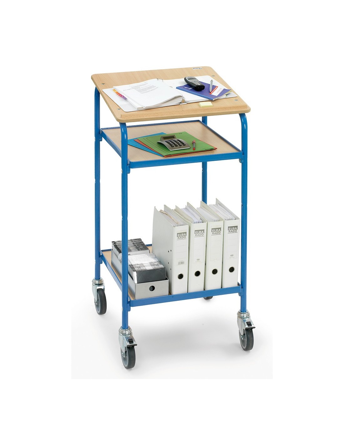 Fetra Rollpult mit Schreibfläche und 2 Ablageböden, Ladefläche 500 x 600 mm