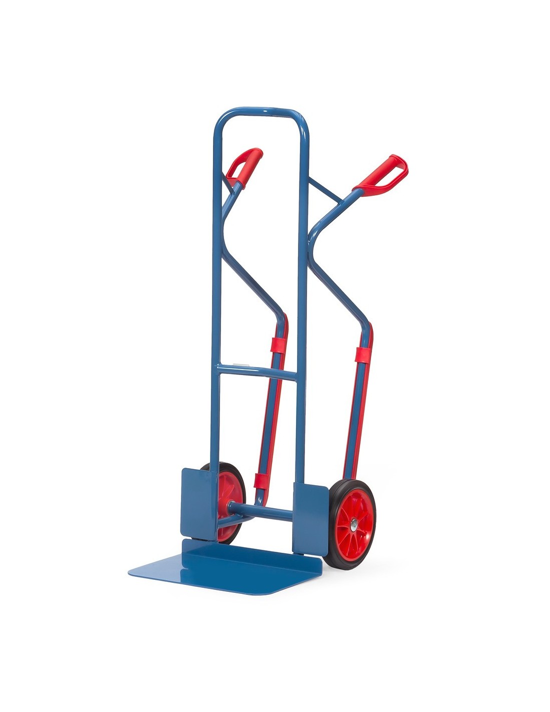 Wichtige technische Merkmale: Stabile Schweisskonstruktion, pulverbeschichtet in RAL 5007 brillantblau. Bügel oben und Querstreben durchgebogen, Handgriffe mit Sicherheitsbügel. Räder mit Polyurethan auf Kunststoff-Felgen und Robuste Lagerung.