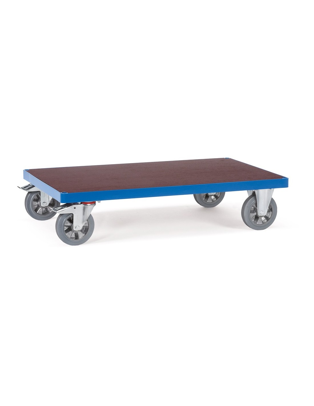 Die Plattformen des Basiswagens bestehen aus rutschsicherem Sperrholz, das wasserfest ist, und bieten eine sichere Transportfläche. Mit 2 Lenk- und 2 Bockrollen ausgestattet, gewährleistet der Wagen gute Laufeigenschaften und eine mittlere bis hohe Tragkraft. Die Vollgummi-Bereifung in blaugrau ist spurlos und die Naben verfügen über Kugellager für eine reibungslose Bewegung.