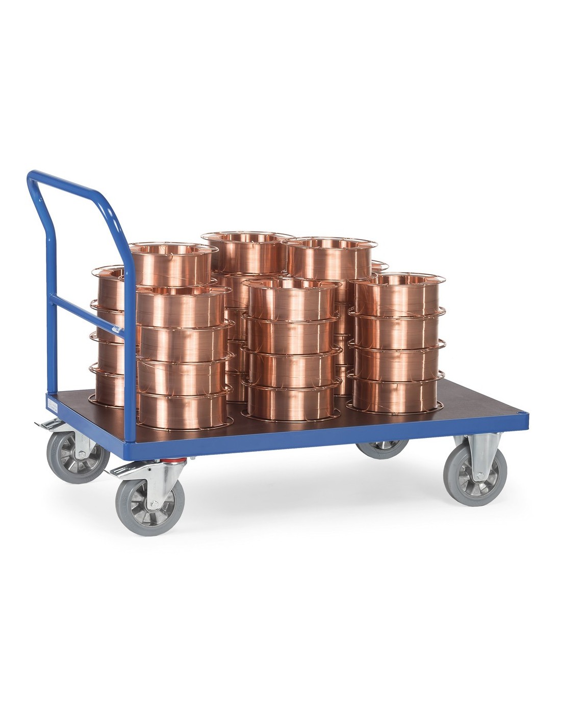 Dieser Transporter wurde speziell für grosse Lasten konstruiert und bietet eine hohe Stabilität und Handlichkeit. Die hochwertigen Elastic-Vollgummirollen mit Kugellagernaben sorgen für einen leichten Lauf und gute Laufeigenschaften. Die Plattformen verfügen über eine rutschsichere Siebdruckplatte aus wasserfestem Sperrholz, was eine sichere Transportmöglichkeit gewährleistet.