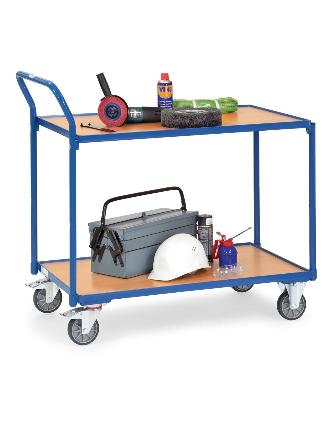 Fetra Tischwagen mit 2 Böden, Griff hochstehend, blau