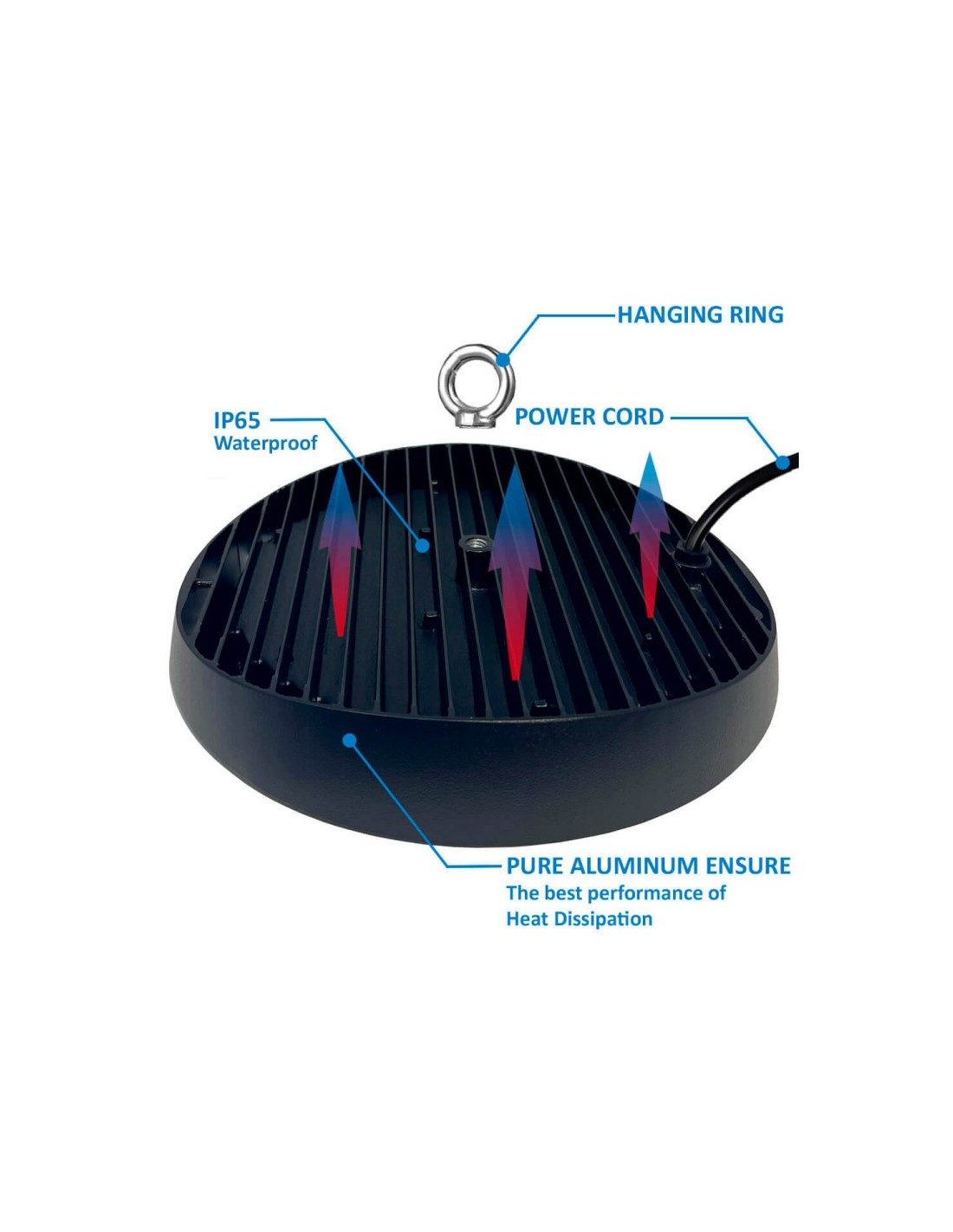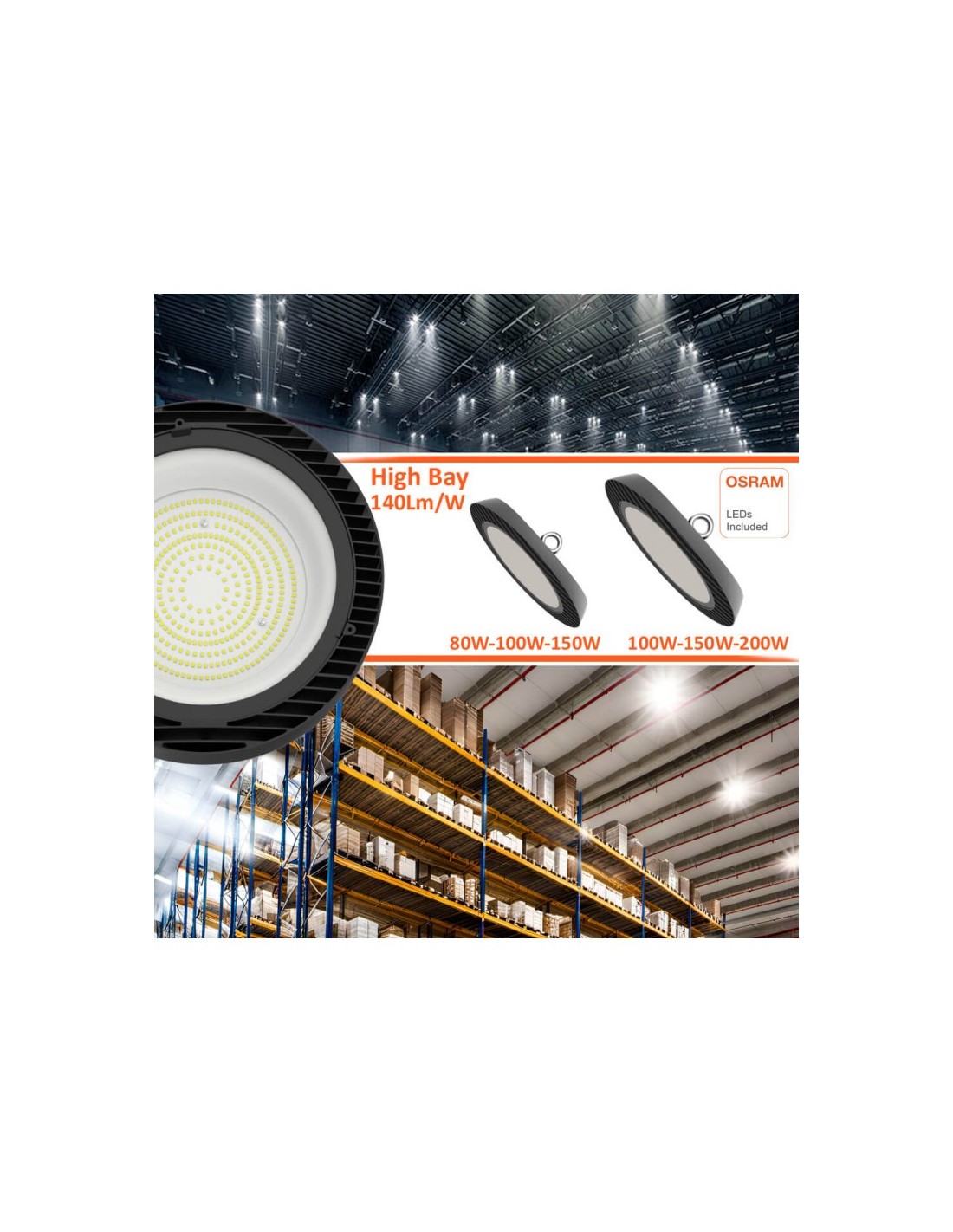 - Hohe Helligkeit: 140 Lm/W – Erhalten Sie eine leistungsstarke und klare Beleuchtung, ideal für grosse industrielle Räume.