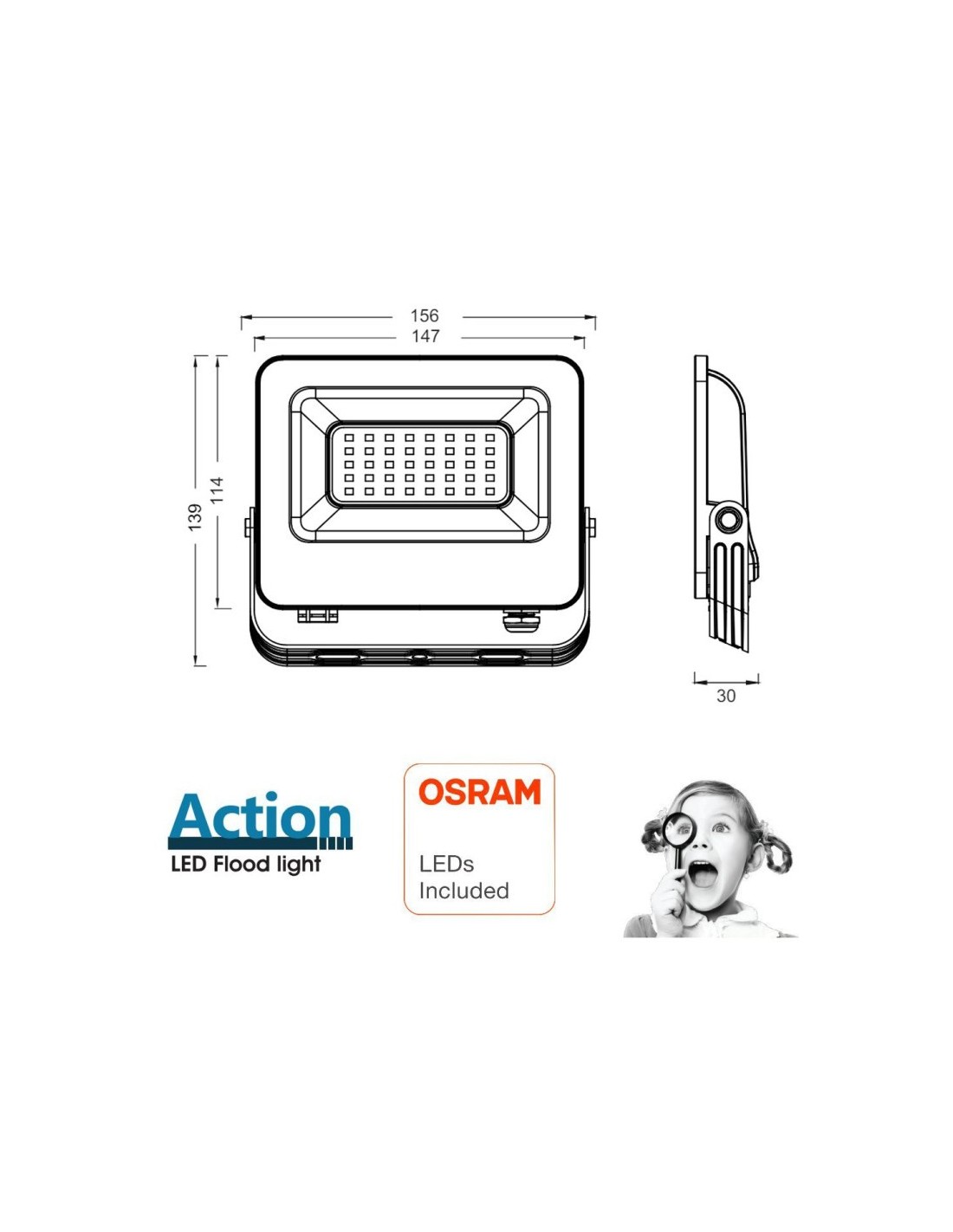 Der LED-FluterACTION PRO OSRAM CHIP DURIS E2835 – ist ein beeindruckendes Beleuchtungsgerät aus hochwertigen Materialien wie Aluminium und Glas, die Langlebigkeit und Widerstandsfähigkeit garantieren. Mit seiner Leistung von 30W bietet dieser LED-Projektor eine leistungsstarke und effiziente Beleuchtung, perfekt für eine Vielzahl von Anwendungen.