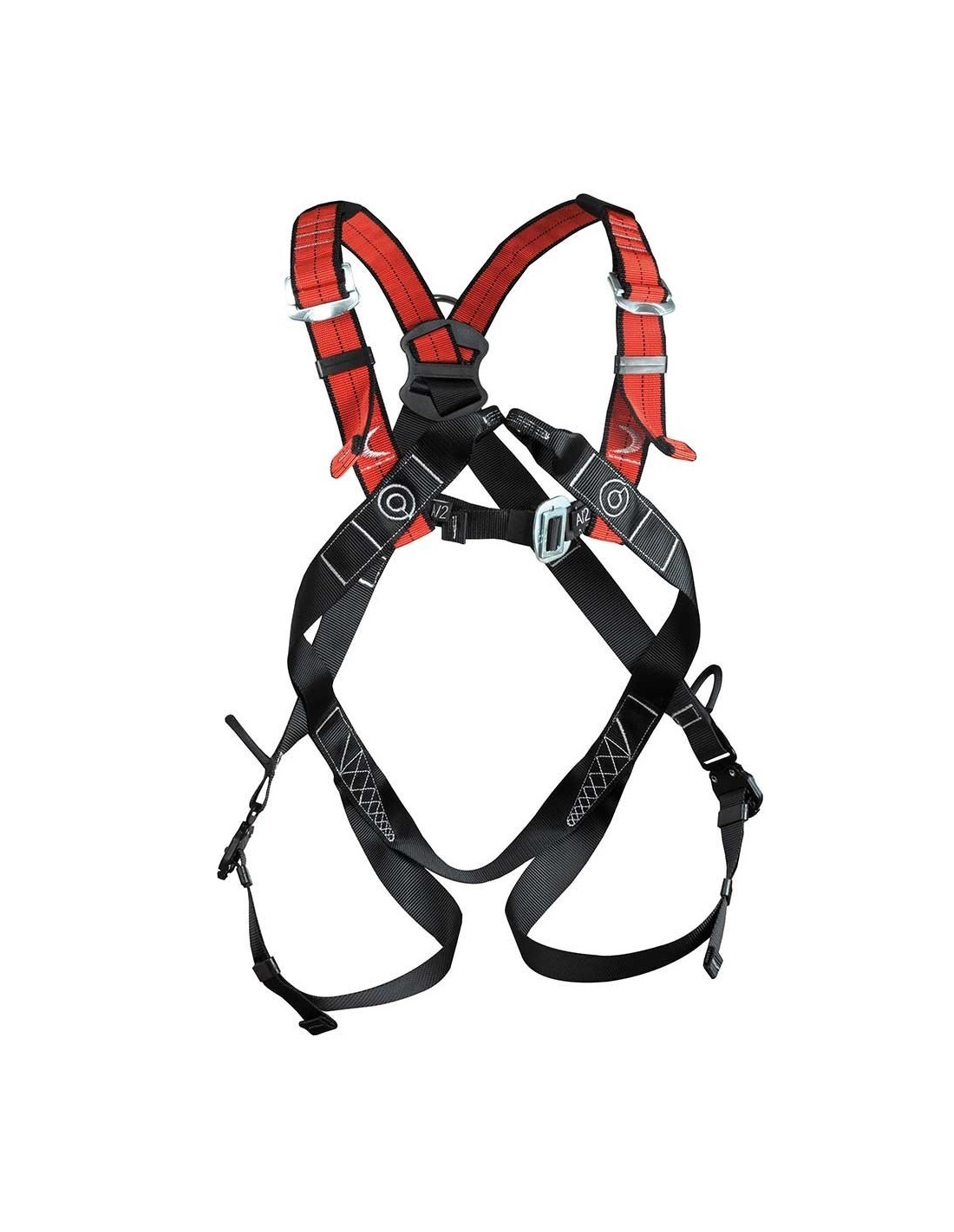 BEFESTIGUNGSPUNKTE : Vorrichtung mit zwei Befestigungspunkten für das Auffangen, einem am Rückseite und einem an der Vorderseite (erreicht durch Verbinden zweier halber Befestigungspunkte A/2). Der große, funktionale dorsale Haken besteht aus geschmiedetem Stahl.