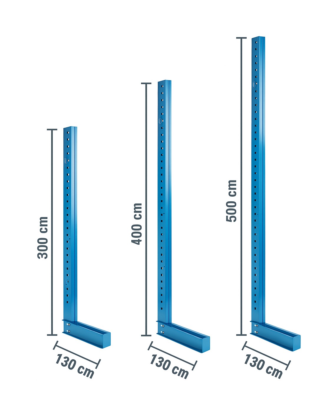 Ständer für Kragarmregal / Einseitig / 130 cm tief / 3m, 4m, 5m