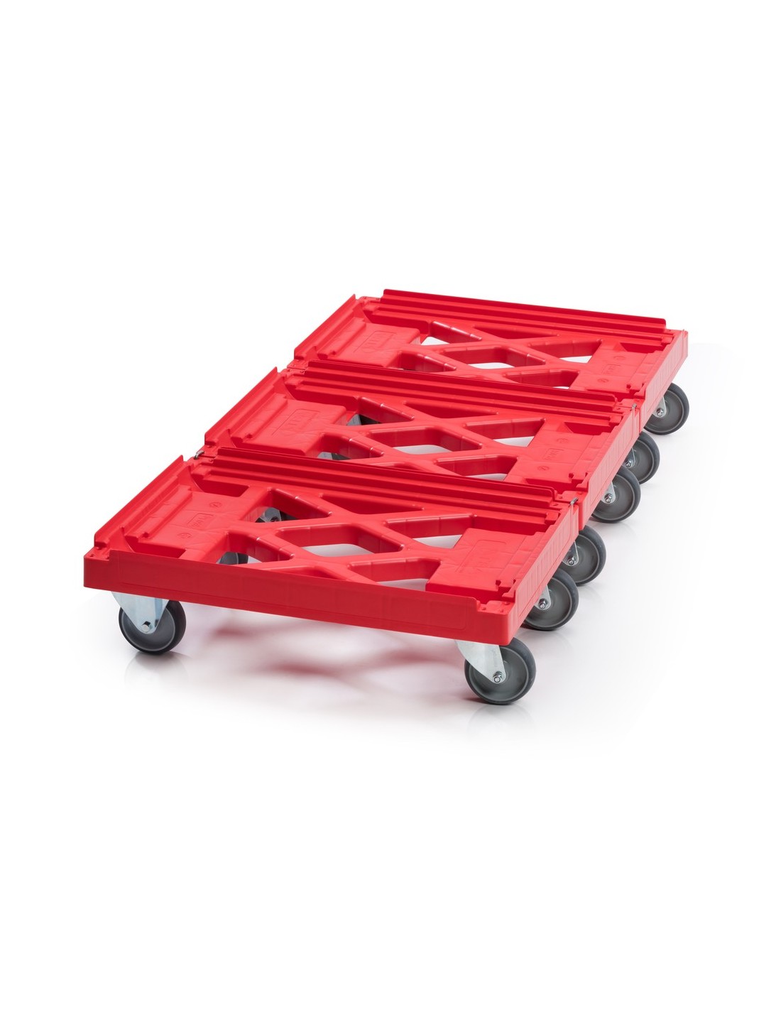 Dieses Kunststoff-Fahrgestell HL für Behälter ist die perfekte Lösung für den Transport von verschiedenen Behältern wie EURO, KLT, SN und ALC. Dank des einzigartigen Systems können die Fahrgestelle leicht in Länge und Breite miteinander verbunden werden. Sie sind stapelbar und können hintereinander in logistische Gruppen eingebunden werden.