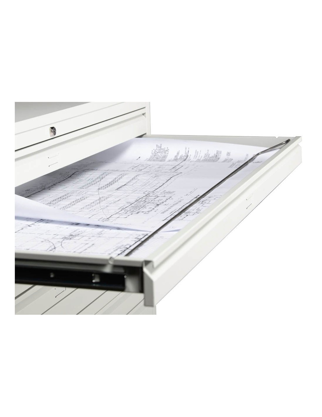 Speziell zur Archivierung von grossflächige Unterlagen wie z.B. Skizzen, Pläne, Plakate, aber auch für kleine Artikel wie z.B. eine Brillenkollektion ist der Wolfstahl Planschrank lichtgrau 6 Schubladen 113,0 x 83,0 x 62,0 cm ideal geeignet. Die Abdeckplatte kann als zusätzliche Präsentations- oder Ablagefläche genutzt werden. Das professionelle Möbelstück zur Ablage Ihrer A1-Unterlagen.
