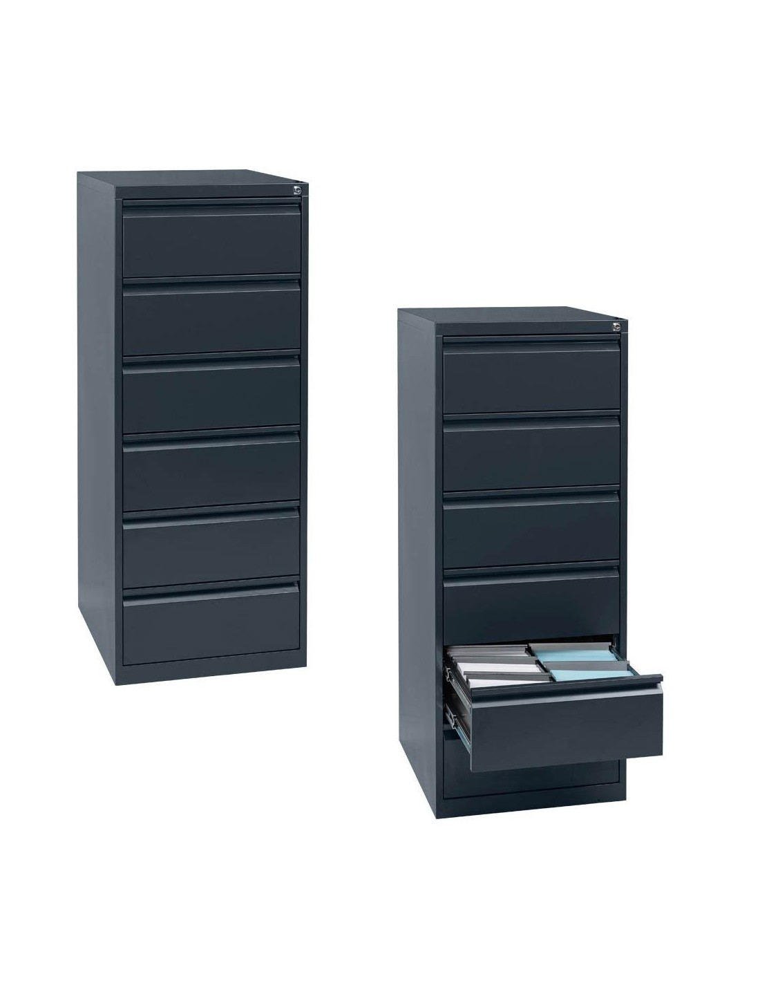 Wolfstahl Karteischrank stahl 6 Schubladen 53 x 62 x 132 cm schwarz
