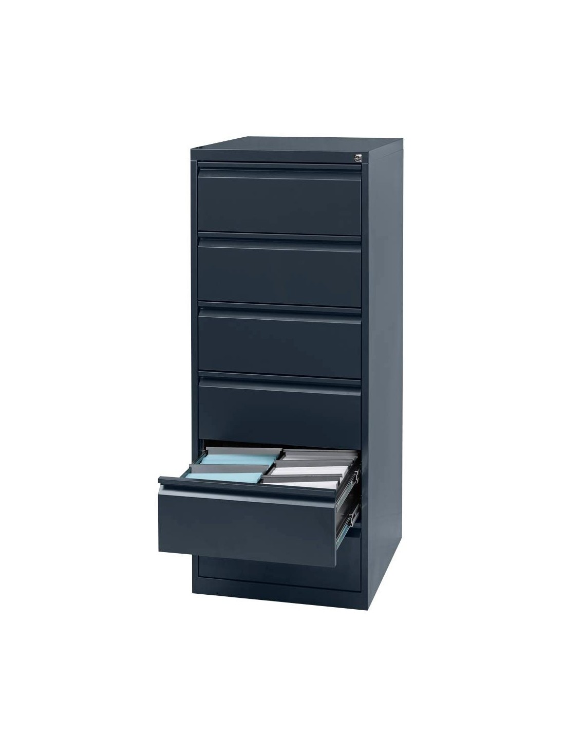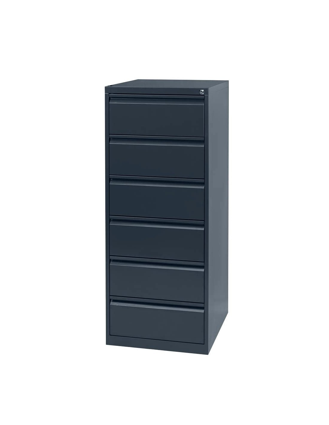 In den Schubladen des Wolfstahl Karteischranks anthrazit 6 Schubladen 53,0 x 62,0 x 132,0 cm finden jede Menge Akten und Mappen mühelos Platz. Besonders in Abteilungen mit vielen Akten oder Karteien macht so ein Möbelobjekt immer Sinn. Mit einer strukturierten Ordnung und dem schnellen Zugriff ist er das perfekte Hilfsmittel für jede Praxis, Personalabteilung oder auch in vielen anderen Branchen. So wird der Arbeitsalltag effizienter und strukturierter. Sie erhalten hier ein professionelles Büromöbel zur Ablage von A5-Unterlagen.