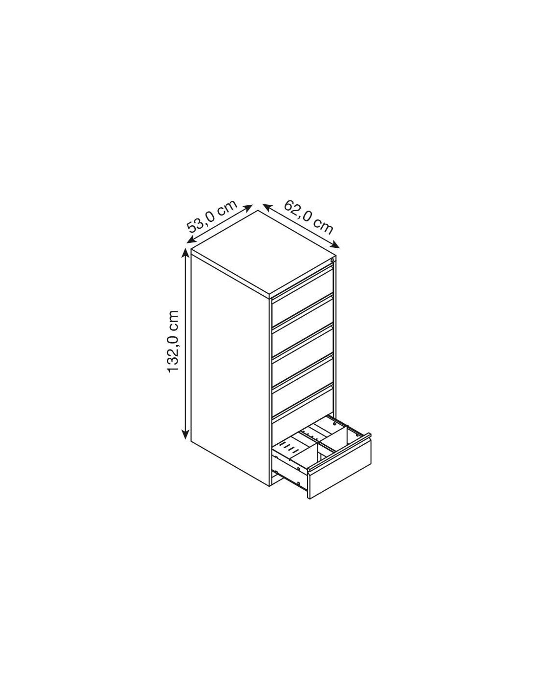 Dieses Möbelteil hat 6 Schubladen für Ihre Geschäftsunterlagen zur Verfügung. Die Tragkraft je Schublade beträgt bis zu 75,0 kg. Damit beim Herausziehen der Schübe dieses Möbelstück durch sein Eigengewicht nicht nach vorne kippt, wird das gleichzeitige Öffnen von zwei Schubladen und ein zu weites Herausziehen dank der Auszugssperre verhindert – denn Sicherheit muss sein. Dank der kugelgelagerten Teleskopschienen lassen sich die Schubladen einfach und ohne Mühe öffnen und schliessen. Die Schubladen sind bis zu 100% ausziehbar. Für die übersichtliche Ablage Ihrer Dokumente sind die Schubladen doppelbahnig ausgestattet. Praktische Trennschienen beugen einem Verrutschen der Karteien vor, was eine ordentliche Ablage gewährleistet.