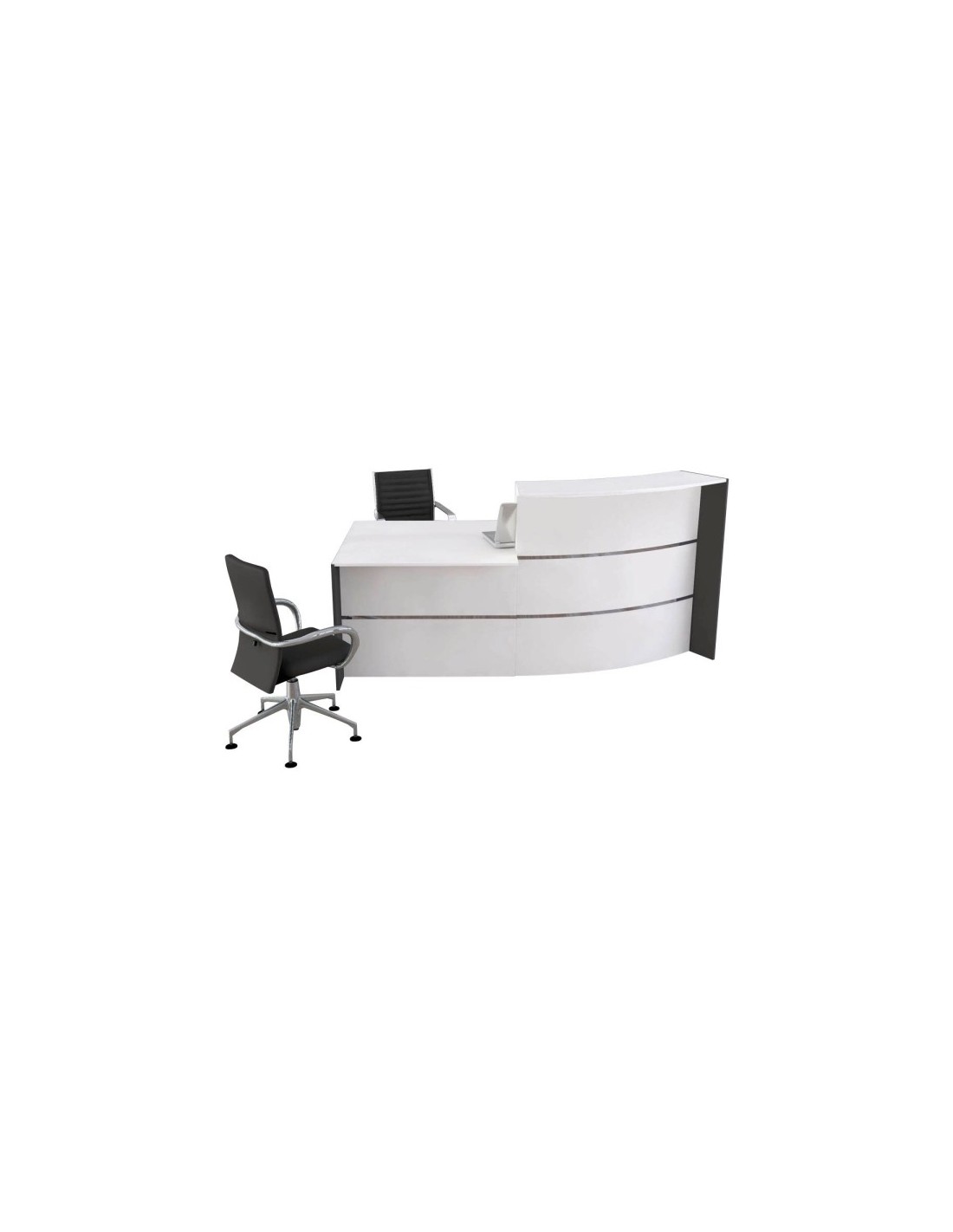 Die Empfangstheke BARI in elegantem Weiss von Wolfstahl ist eine stilvolle Lösung für jeden Empfangsbereich. Mit ihrem gebogenen Design fügt sie sich harmonisch in moderne Büroumgebungen ein und vermittelt einen professionellen Eindruck.