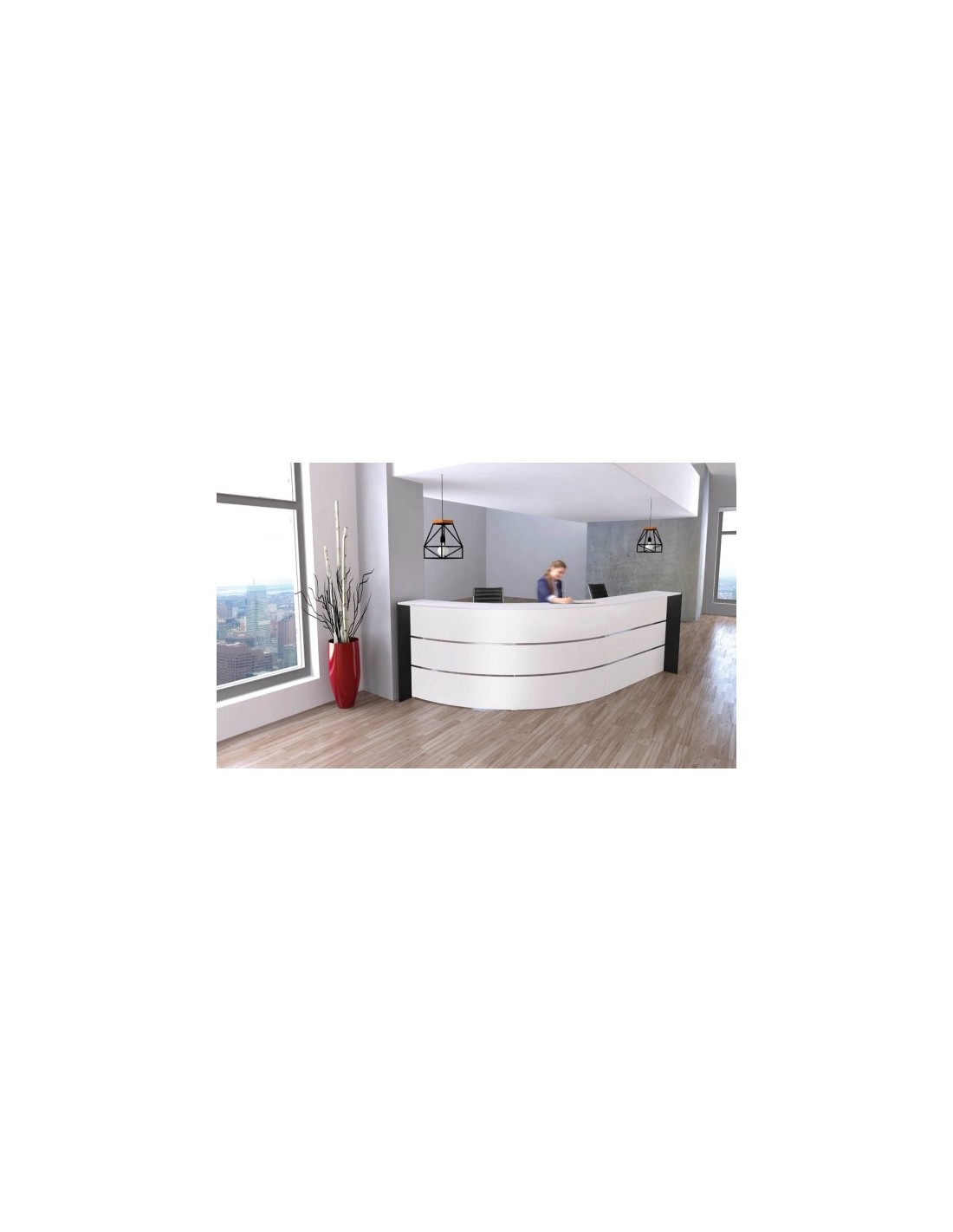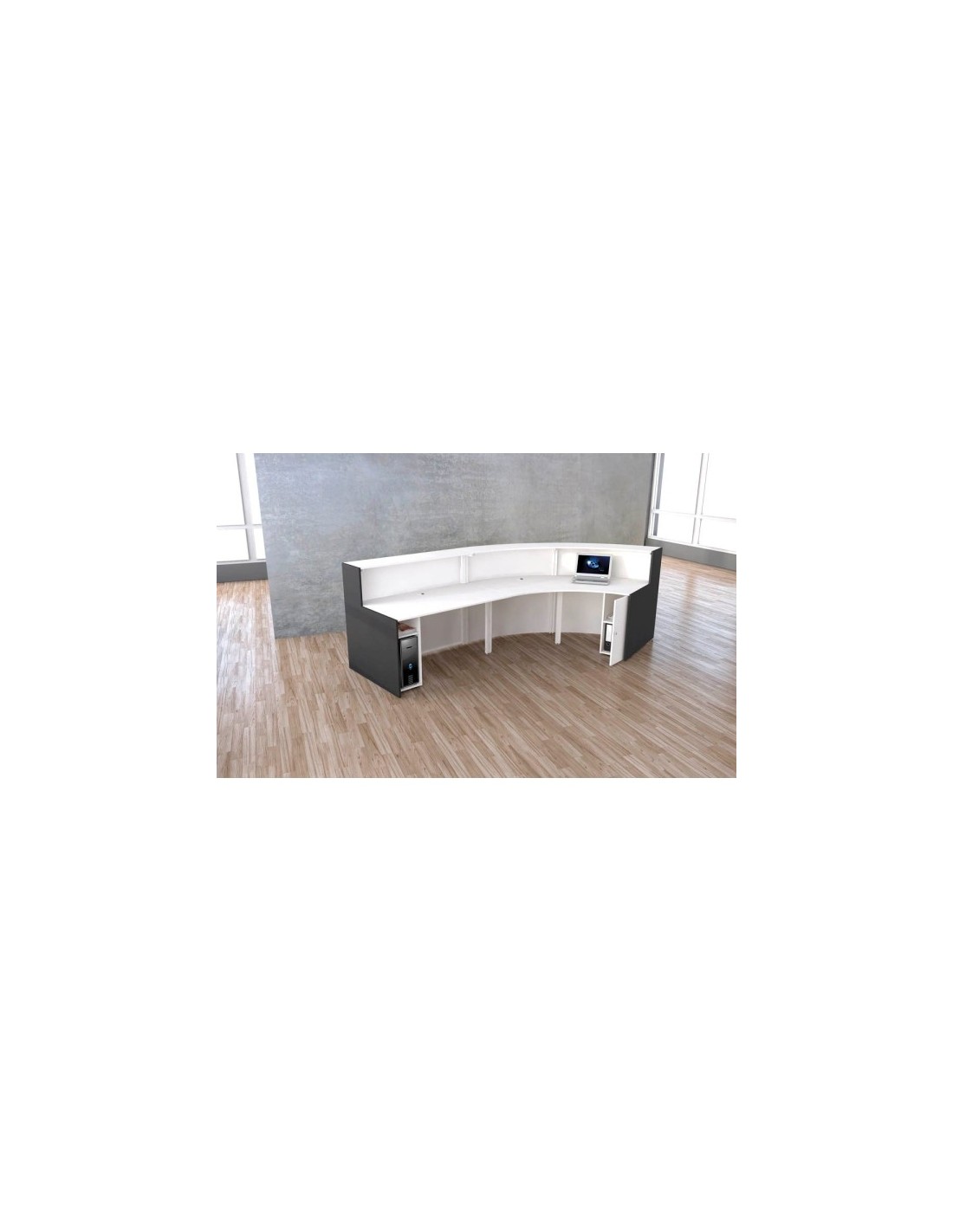 Die Empfangstheke bietet Ihnen grosszügige Masse und eine ansprechende, gebogene Ausführung. Sie ist sowohl rechts als auch links montierbar, sodass sie sich flexibel in Ihre Räumlichkeiten integrieren lässt.