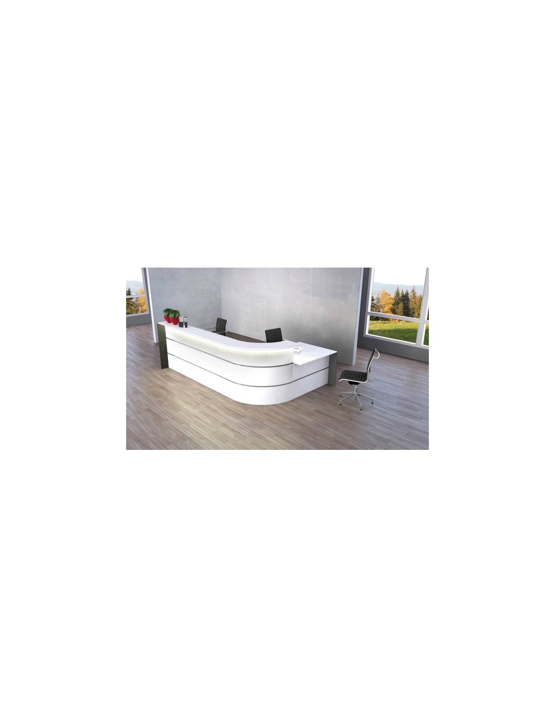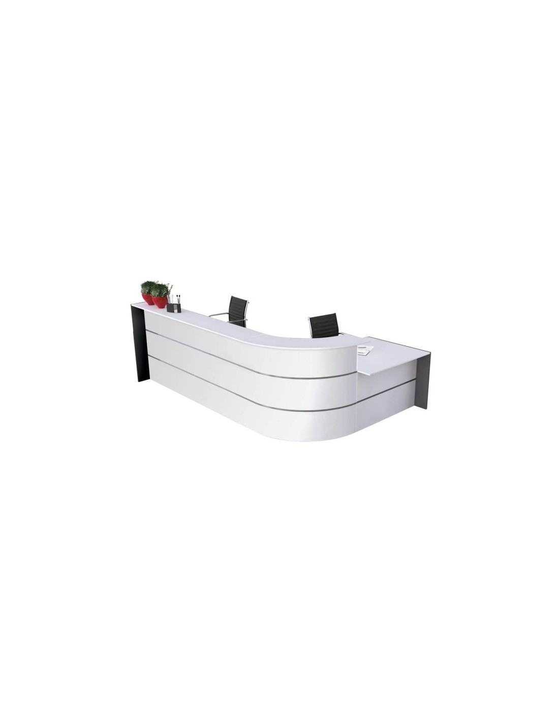 Wolfstahl präsentiert Ihnen die stilvolle Empfangstheke BARI in strahlendem Weiss. Mit einer Breite von 370cm, einer Höhe von 112cm und einer Tiefe von 200cm bietet diese L-förmige Theke ausreichend Platz für Ihren Empfangsbereich. Das Gesamtgewicht beträgt 121,2kg und die Theke kann mit bis zu 75kg belastet werden.