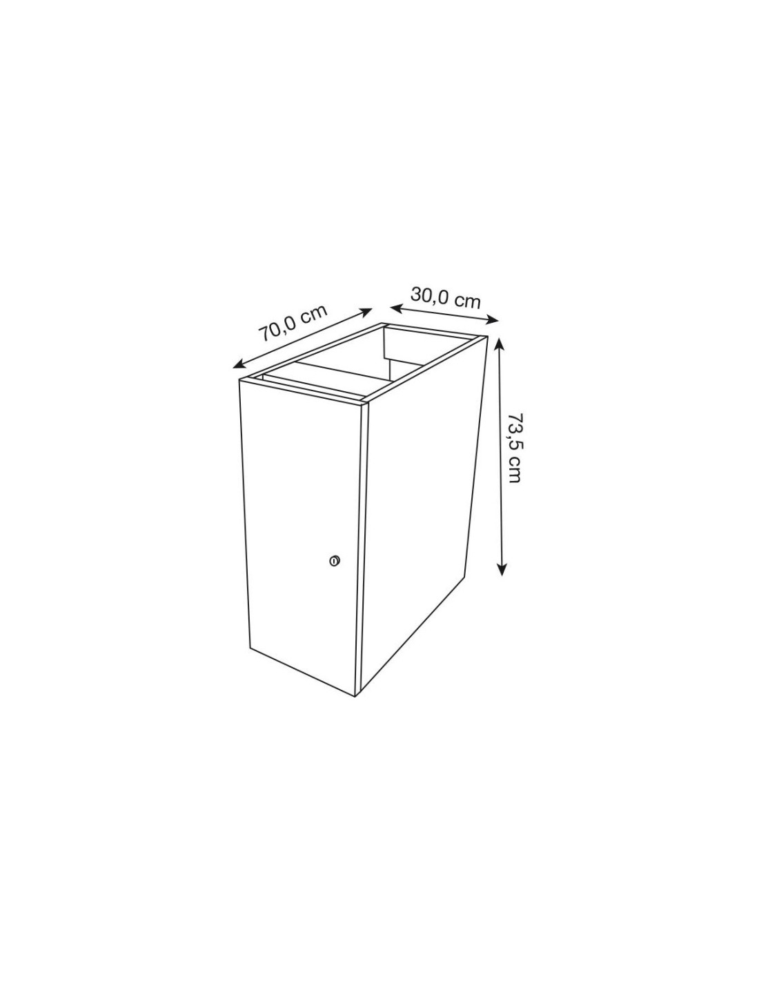 Die Abmessungen des Unterschranks betragen B 30 x H 73,5 x T 60 cm, und er ist in der Ausführung mit Tür erhältlich. So können Sie Ihren Arbeitsplatz stets aufgeräumt halten. Der verstellbare Fachboden sorgt für zusätzliche Flexibilität und passt sich Ihren individuellen Bedürfnissen an.