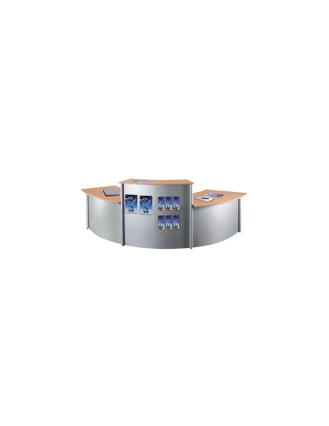 Erleben Sie mit der Grundtheke Genua 45° aus dem Hause Wolfstahl einen stilvollen Empfangsbereich in Ihrem Unternehmen. Mit ihren kompakten Massen von 118,0 x 70,0 x 115,0 cm (BxTxH) bietet sie nicht nur ausreichend Platz für Ihre Gäste, sondern fügt sich auch harmonisch in jedes Bürokonzept ein. Die elegante Farbkombination aus Silber und Buche unterstreicht den modernen Charakter dieser Empfangstheke.