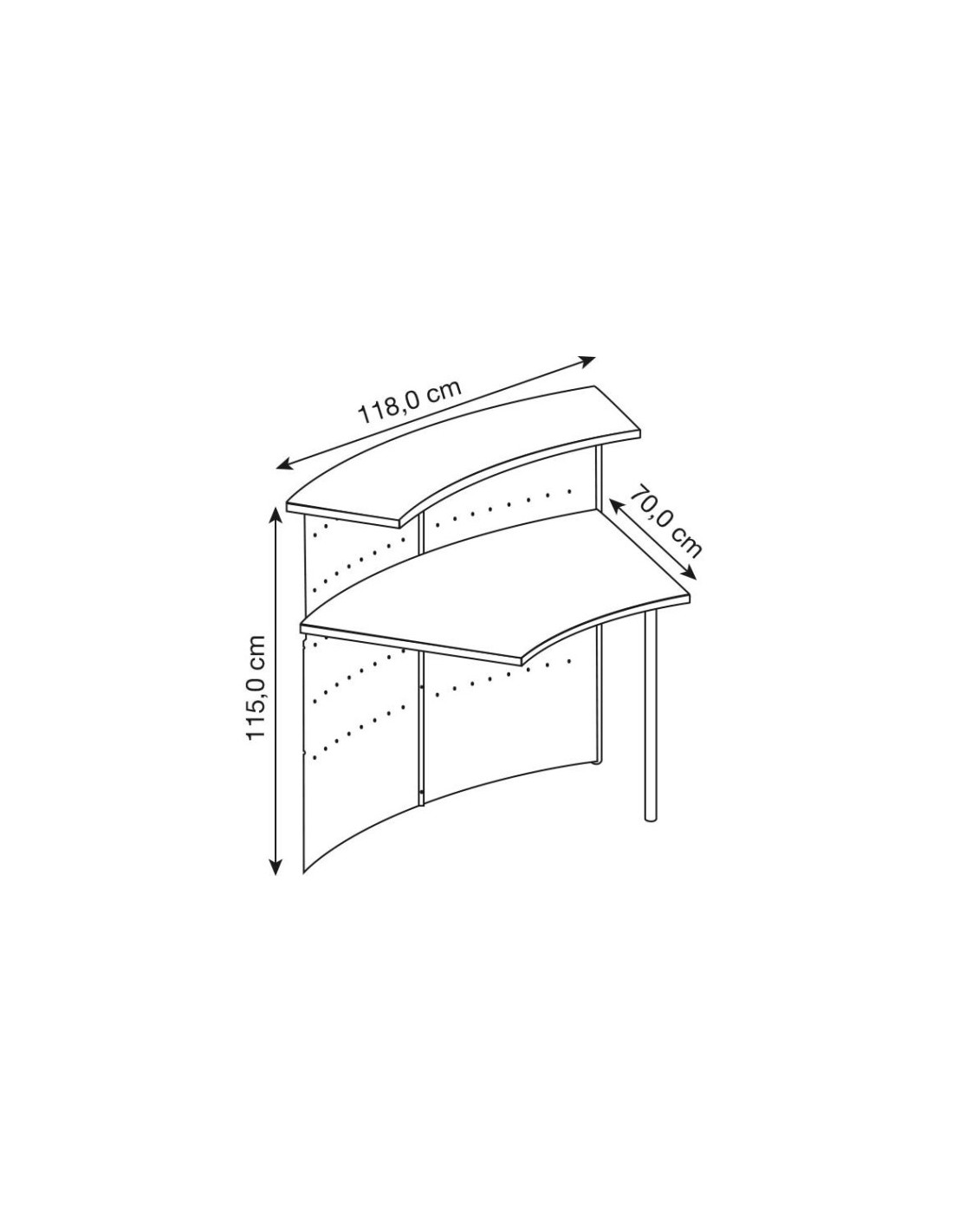 Die Anbautheke ist ideal für Büros, Konferenzräume oder als zusätzlicher Arbeitsplatz in Ihren Wohnräumen. Sie besticht durch ihre gebogene Ausführung und sorgt somit für eine ansprechende Atmosphäre. Die silbernen Akzente harmonieren perfekt mit der warmen Farbe der Buche, wodurch ein stilvolles Gesamtbild entsteht.