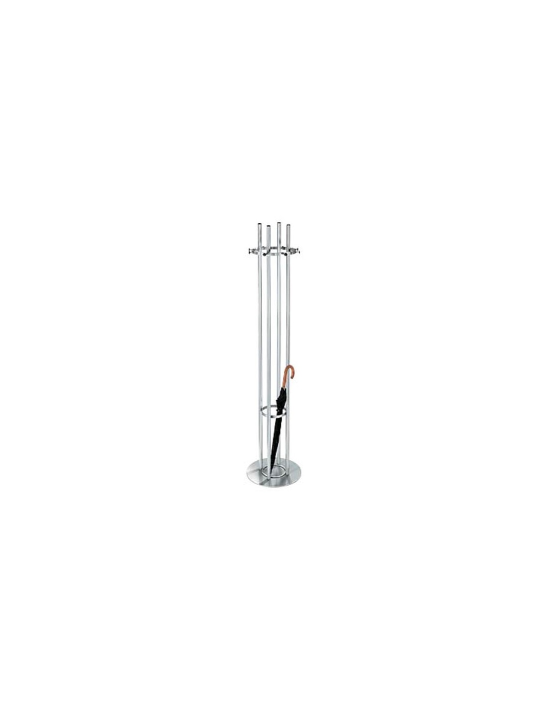 Aussergewöhnlich im Design. In stabiler Säulenkonstruktion aus vier Edelstahlrohren. Hakenkranz mit 12 Haken, bestehend aus Schirmring und Tropfwasserschale. Masse: 41,0 x 170,0 cm (ØxH). Gewicht : 11,6 kg. Farbe : alusilber.